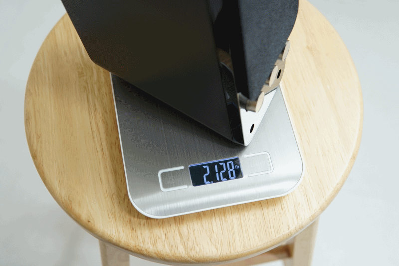 액티브 스피커는 2.1kg, 패시브 스피커는 케이블 포함 1.8kg 정도입니다.