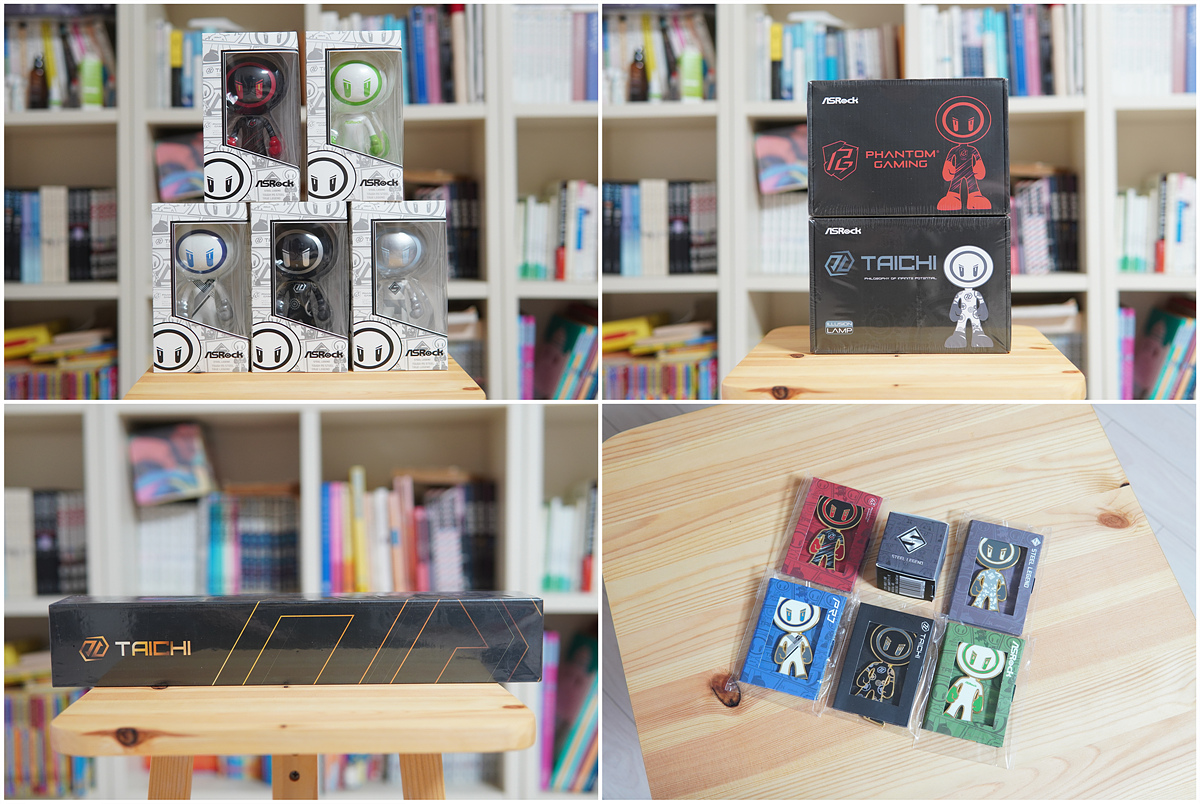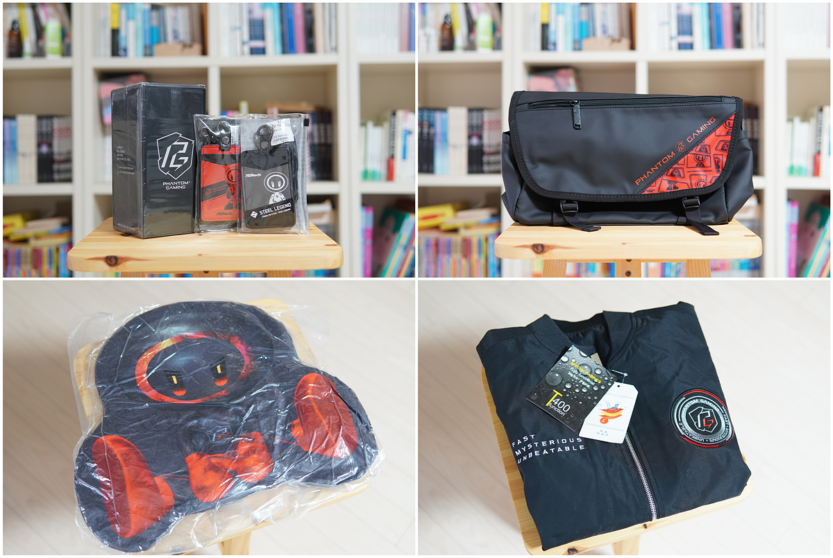 ASRcock 피규어 세트, 일루전 램프 두 개, 캐릭터 핀과 미니큐브, 타이치 장패드입니다. 저는 판매 목적이 아닌 브랜드에서 특별하게 제공되는 굿즈 상품들을 상당히 좋아하데 애즈락에서도 이렇게 많은 캐릭터나 굿즈가 있는지 처음 알았네요. 다른 브랜드의 다양한 모양과 크기의 인형 굿즈 인기가 상당했는데 애즈락도 현재 나와있는 굿즈를 좀 더 적극적으로 활용해야 같습니다. 귀여운 캐릭터라 여러 가지 크기로 만들어도 좋을 거 같고 그립톡 같은 액세서리들도 인기가 많을 거라 생각됩니다.