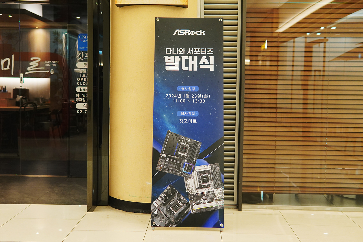 이런 애즈락에서는 자사의 메인보드를 다양하게 활용하고 소개하는 "ASRock 다나와 서포터즈"를 모집했고 지난 1/23일 용산에 위치한 갓포미르에서 발대식 행사가 진행되었습니다.