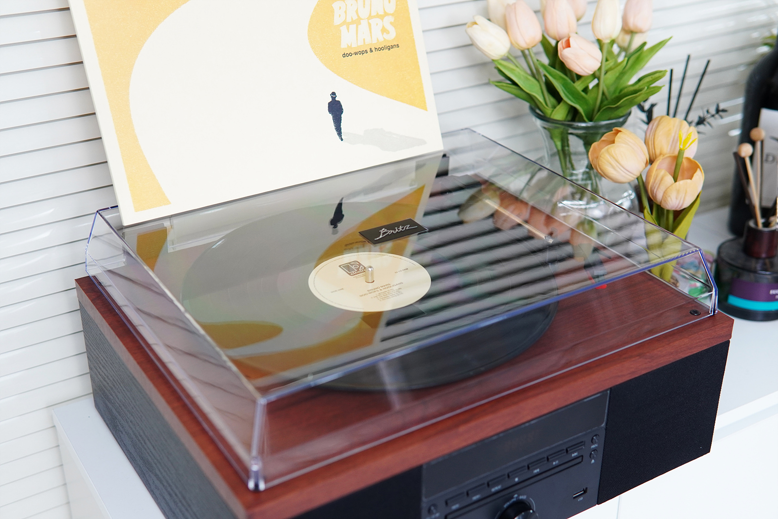 일반적인 플레이어에 LP까지 더해지다 보니 가로, 세로(깊이), 높이까지 전체적으로 크기가 있어서 작은 방보다는 거실이나 조금 큰 원룸 같은 공간에 조금 더 잘 어울리는 편입니다. 디자인은 개인마다 호불호가 나뉘겠지만 무난한 스타일이라 딱히 나쁘지는 않다고 생각합니다.