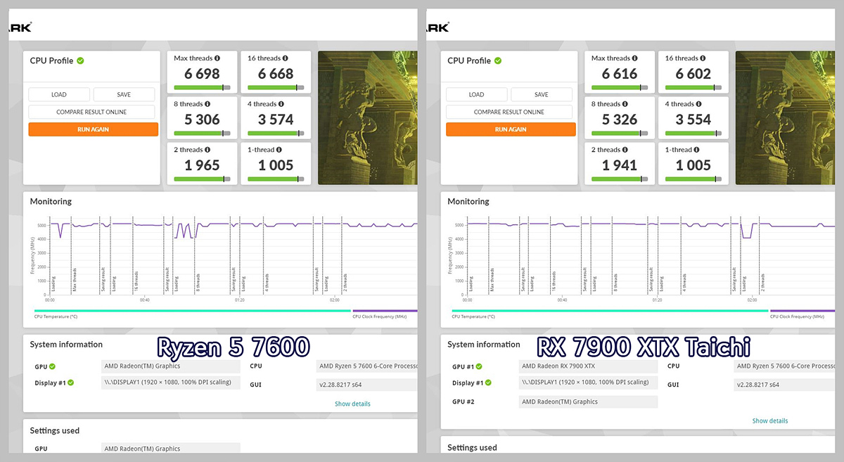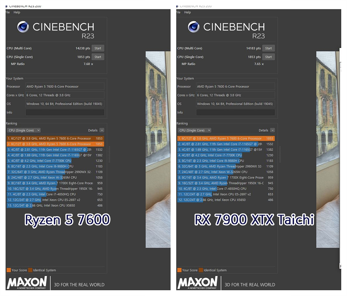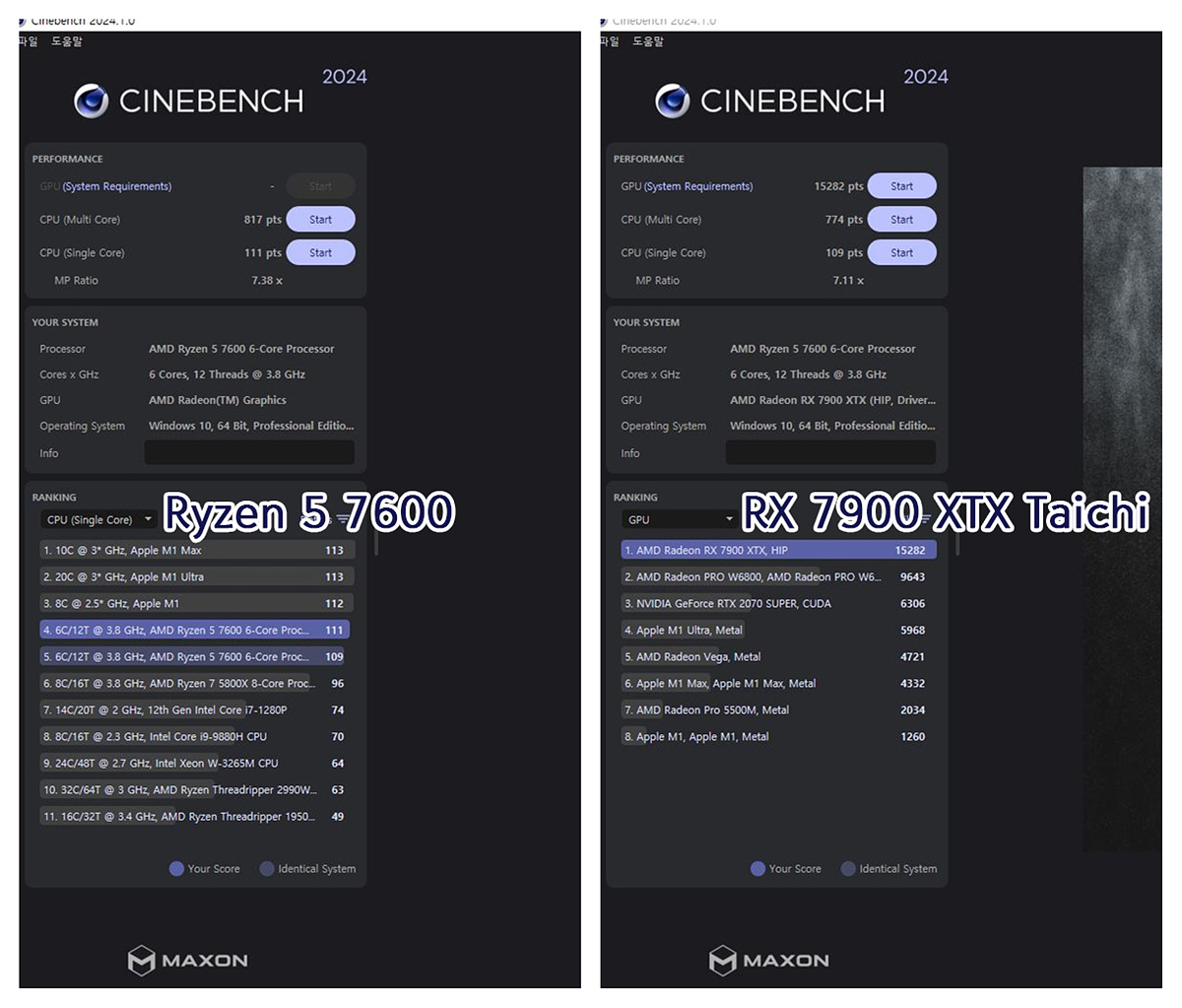 CPU는 Ryzen 5 7600을 사용했으며 VGA는 라데온 RX 7900 XTX 타이치를 장착하였습니다. 그래픽카드에 비해 CPU가 조금 딸리는 사양이지만 실제 사용에서 문제가 되지는 않습니다. ^^
