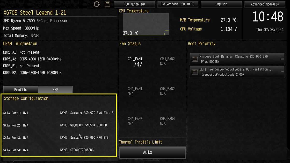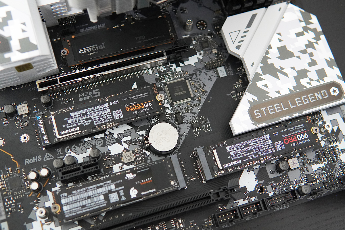 X670 스틸레전드는 빵빵한 전원부만큼이나 이를 효율적으로 사용할 수 있는 방열판이 있어서 시스템의 높은 부하나 사용률에도 안정적으로 사용할 수 있으며 SSD 역시 효율성과 온도 관리를 효과적으로 사용할 수 있죠. 4개의 SATA 장치까지 활용을 한다면 총 8개의 장치를 사용할 수 있으니 SSD뿐 아니라 HDD를 많이 사용하는 환경이라도 전혀 문제없이 편안하게 사용할 수 있습니다. 다음에는 X670E + RX 7000 XTX 시스템 빌드로 다시 찾아오겠습니다.