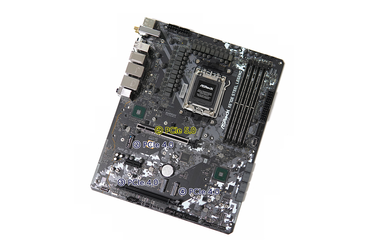 M.2 1번 슬롯은 PCIe 5.0을 지원하며 나머지 3개는 모두 PCIe 4.0을 사용할 수 있습니다.