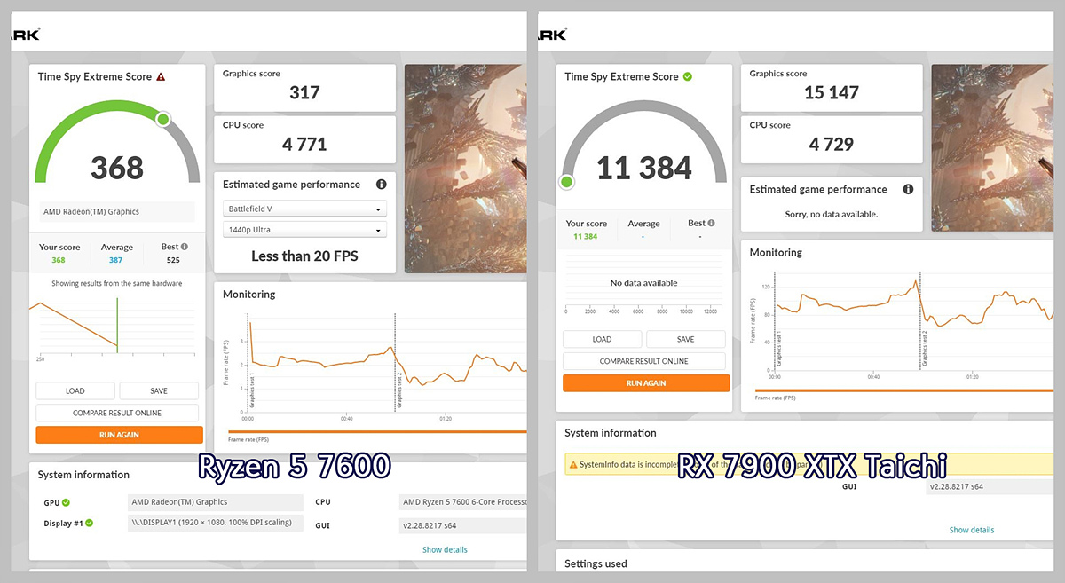 파이어 스트라이크 3종, 타임 스파이 2종 모두 그래픽 점수가 아닌 피직스나 CPU 점수를 확인해 주세요.