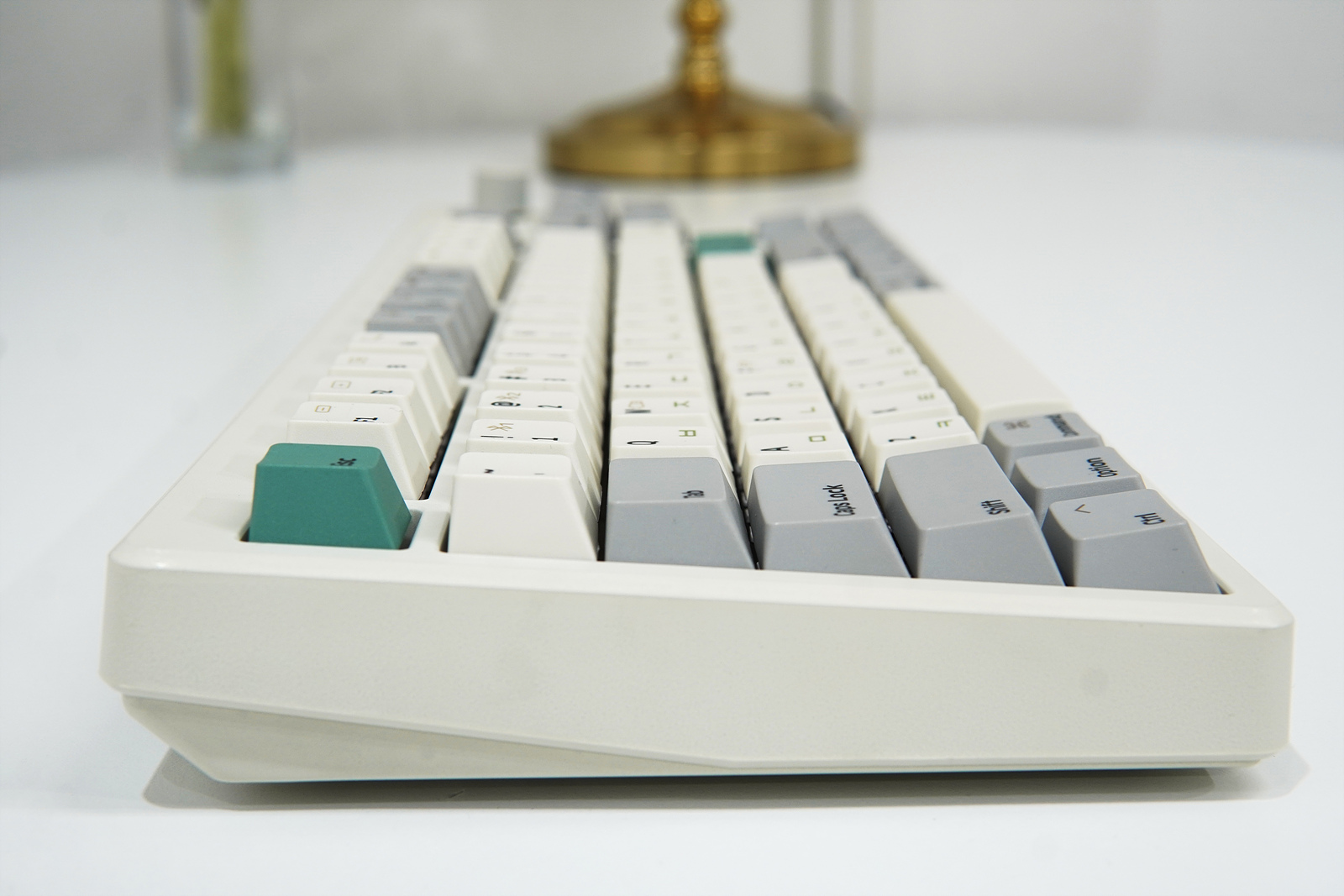 키캡은 체리 프로파일로 PBT 재질에 염료 승화방식으로 각인이 지워질 걱정은 없습니다. 사용자에 따라 다르긴 하겠지만 대체적으로 ABS보다는 PBT 재질을 더 선호하는데 다양한 같은 PBT 재질이라고 해도 브랜드에 따라 품질의 차이는 꽤 크더군요. 현재 엠스톤 키보드나 추가로 구매한 키캡을 몇 년째 사용하고 있는데 키캡 때문에 아쉬웠던 적은 한 번도 없을 만큼 만족도가 상당히 높았습니다. 디자인이나 색이 마음에 든다면 정말 강추합니다.