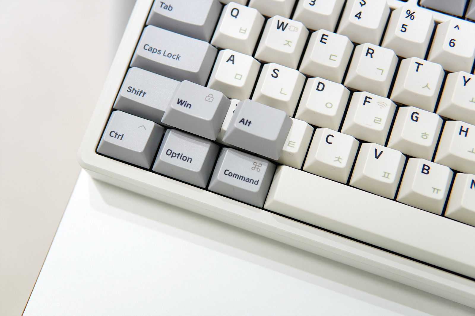 기본 키캡은 Windws가 아닌 Mac에서 사용하는 Option / Command 용이 장착되어 있어서 Windows를 사용하는 사용자들은 Win / Alt로 교체할 수 있습니다.