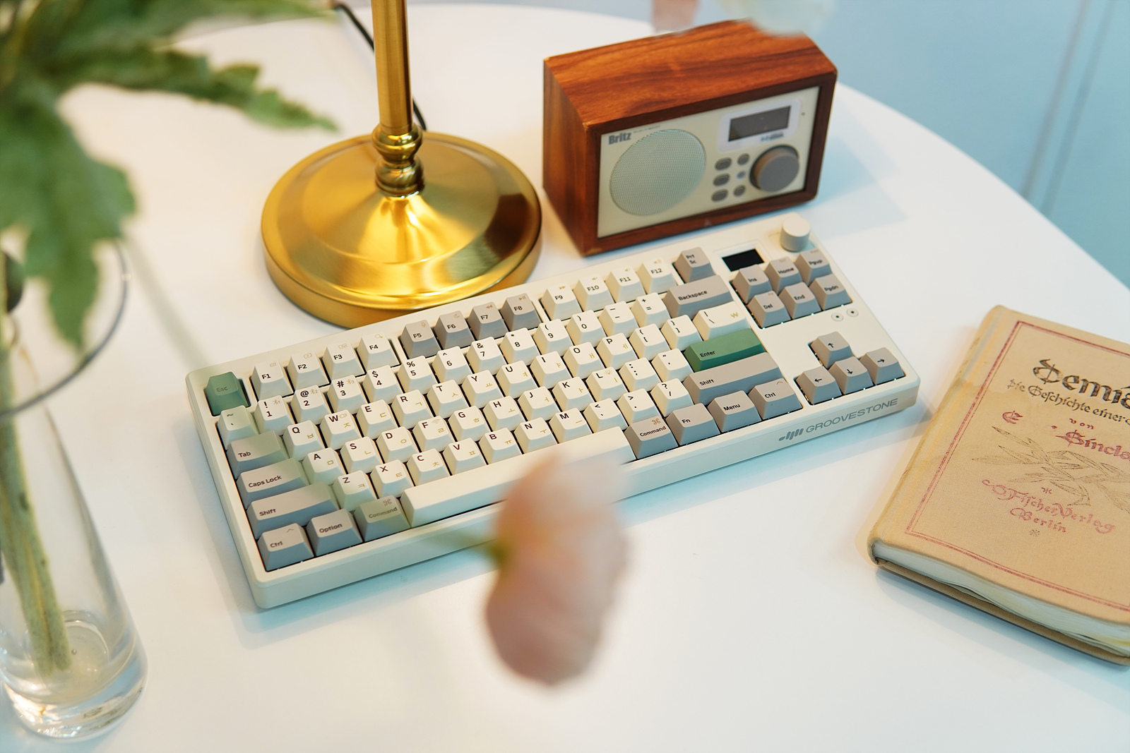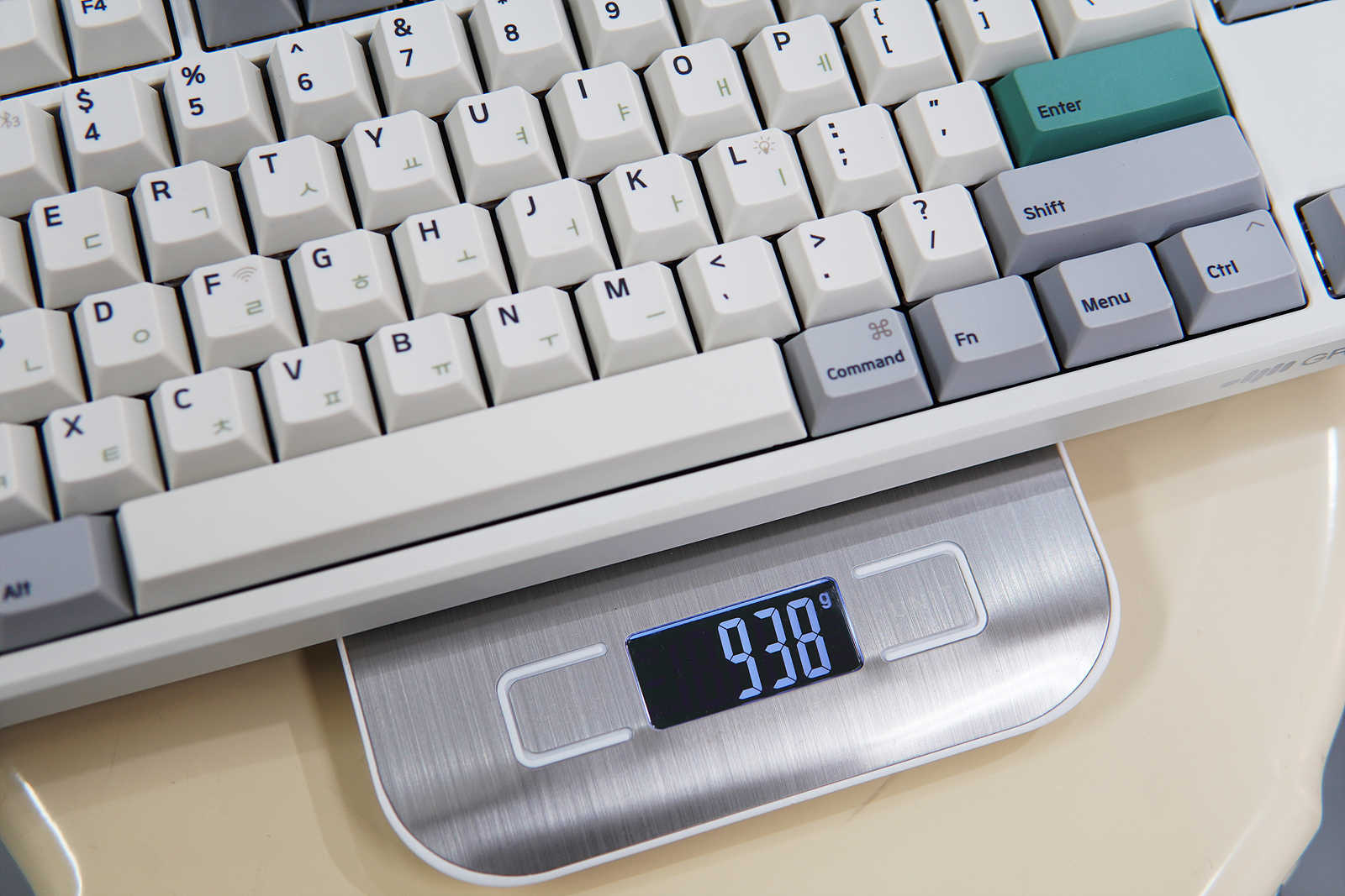 예전에는 깔끔한 블랙 계열을 좋아했는데 이제는 이런 레트로 느낌의 디자인이 참 좋더군요. 기존 엠스톤 키보드와 마찬가지로 Esc, Enter 키는 포인트 키캡이 적용되었습니다.