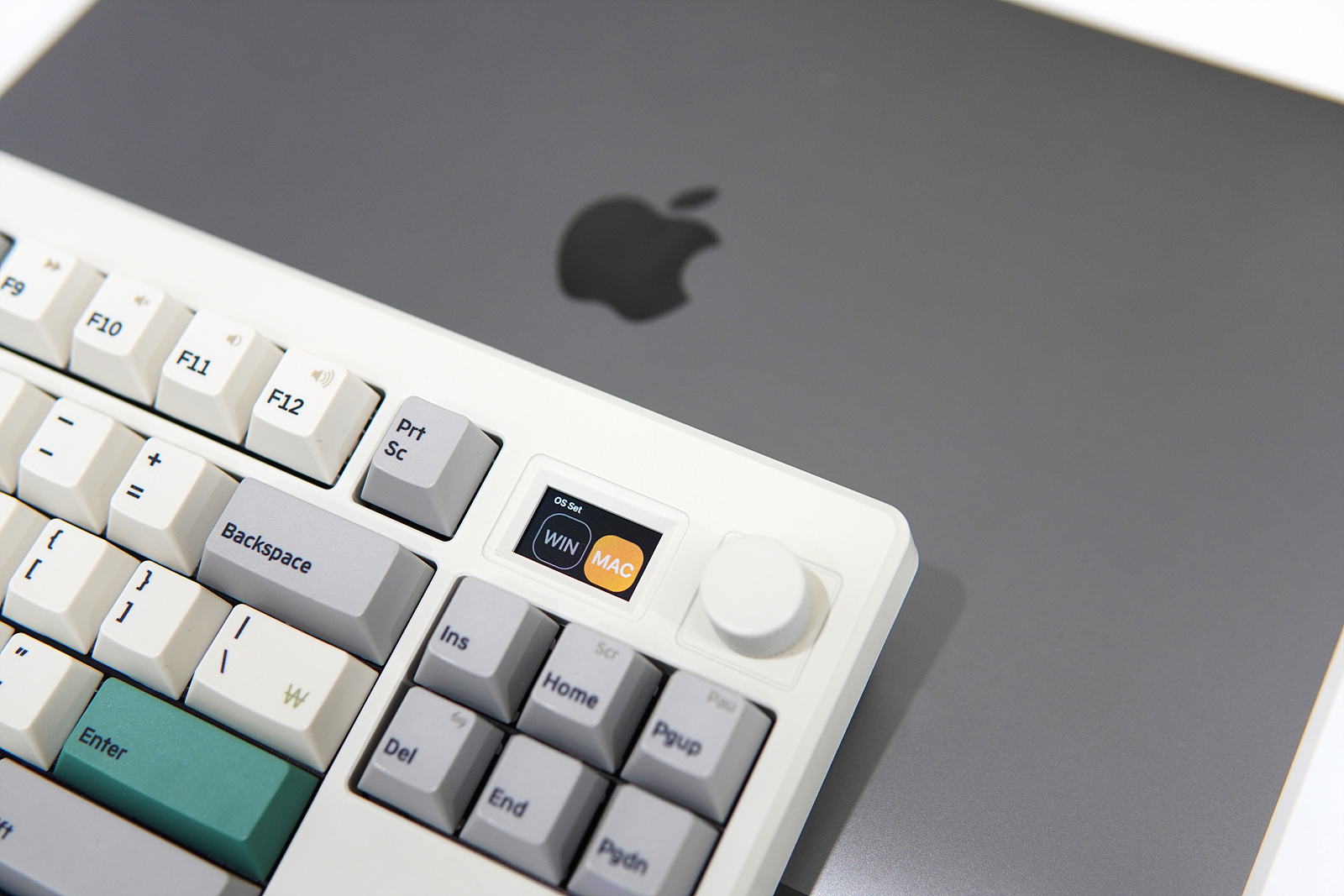 노브를 통해 OS 메뉴를 클릭하면 WIN / MAC를 선택할 수 있습니다. 이 설정은 스마트 스크린 & 노브(knob)로 선택할 수도 있으며 아래쪽에 있는 작은 버튼으로도 바꿀 수 있습니다.