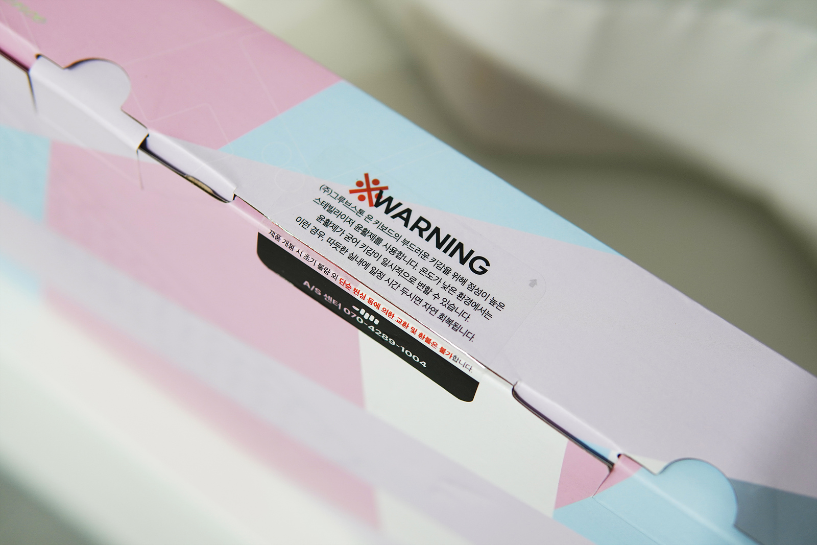 추운 날씨에는 스테빌라이저의 윤활제가 굳는 현상 때문에 키감이 이상하거나 스위치를 압력이 높게 느껴질 수 있습니다. 이런 현상은 불량이 아니니 너무 놀라지 마시고 실내에서 하루정도 두면 정상적으로 회복됩니다.