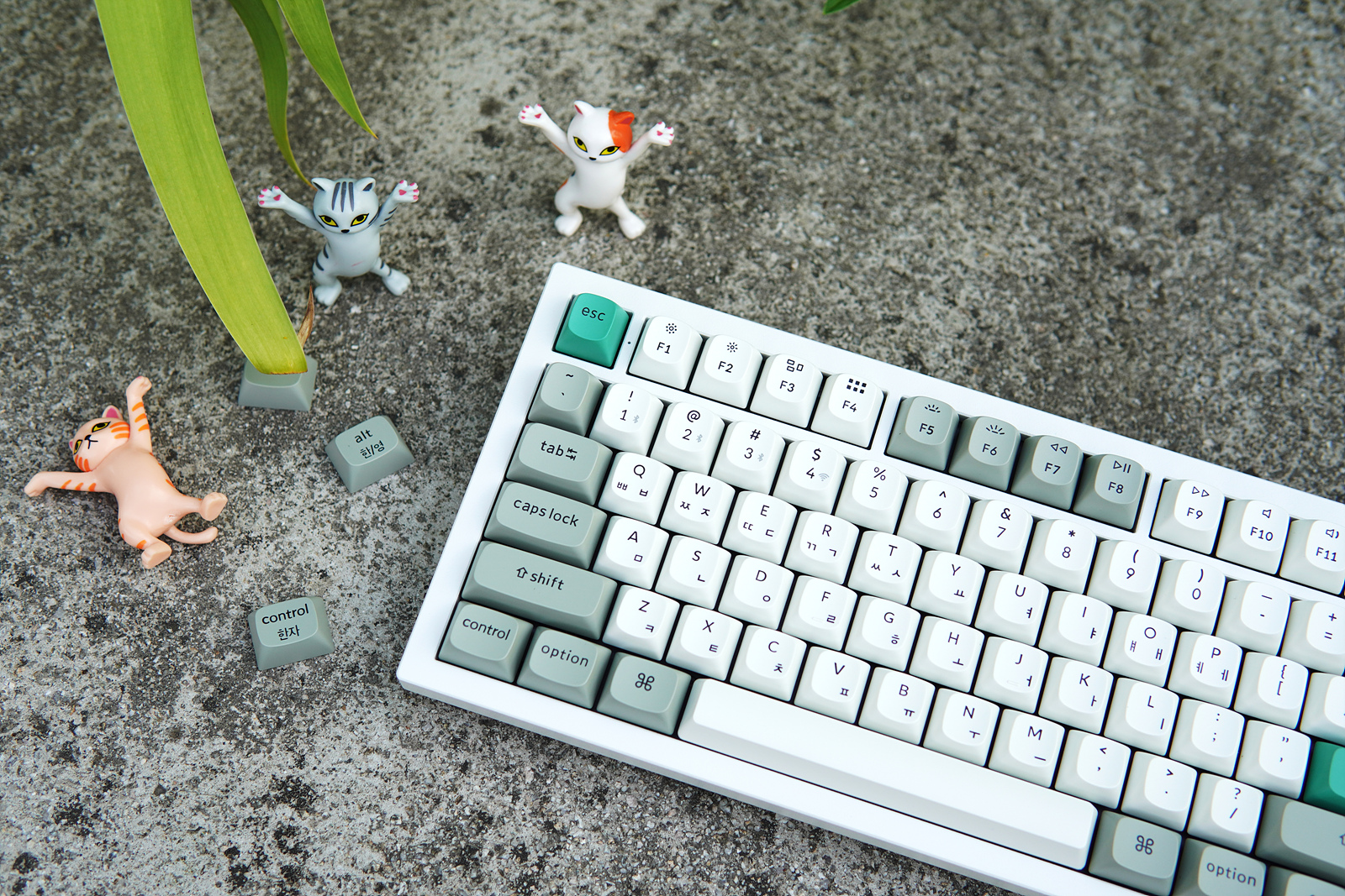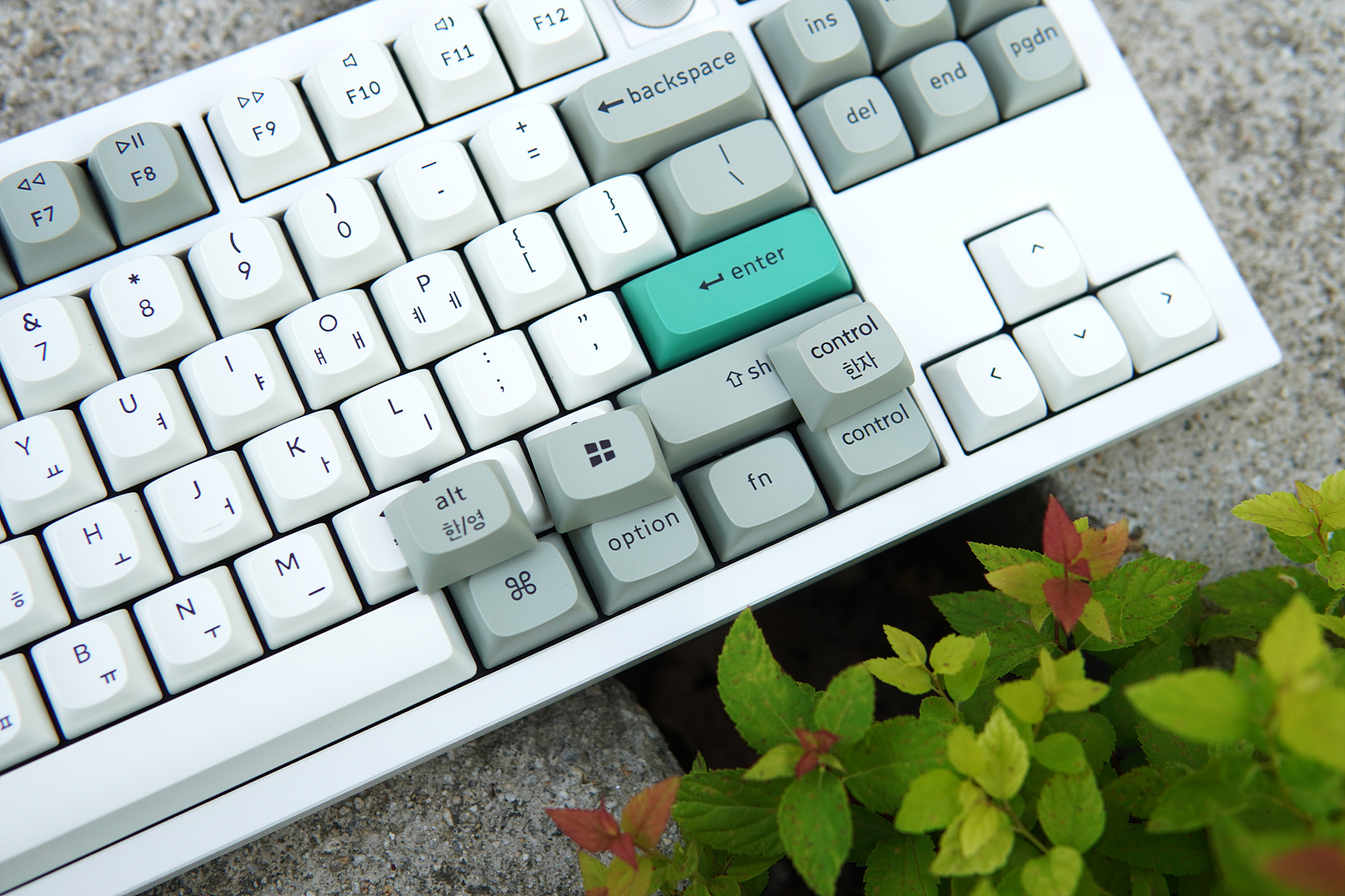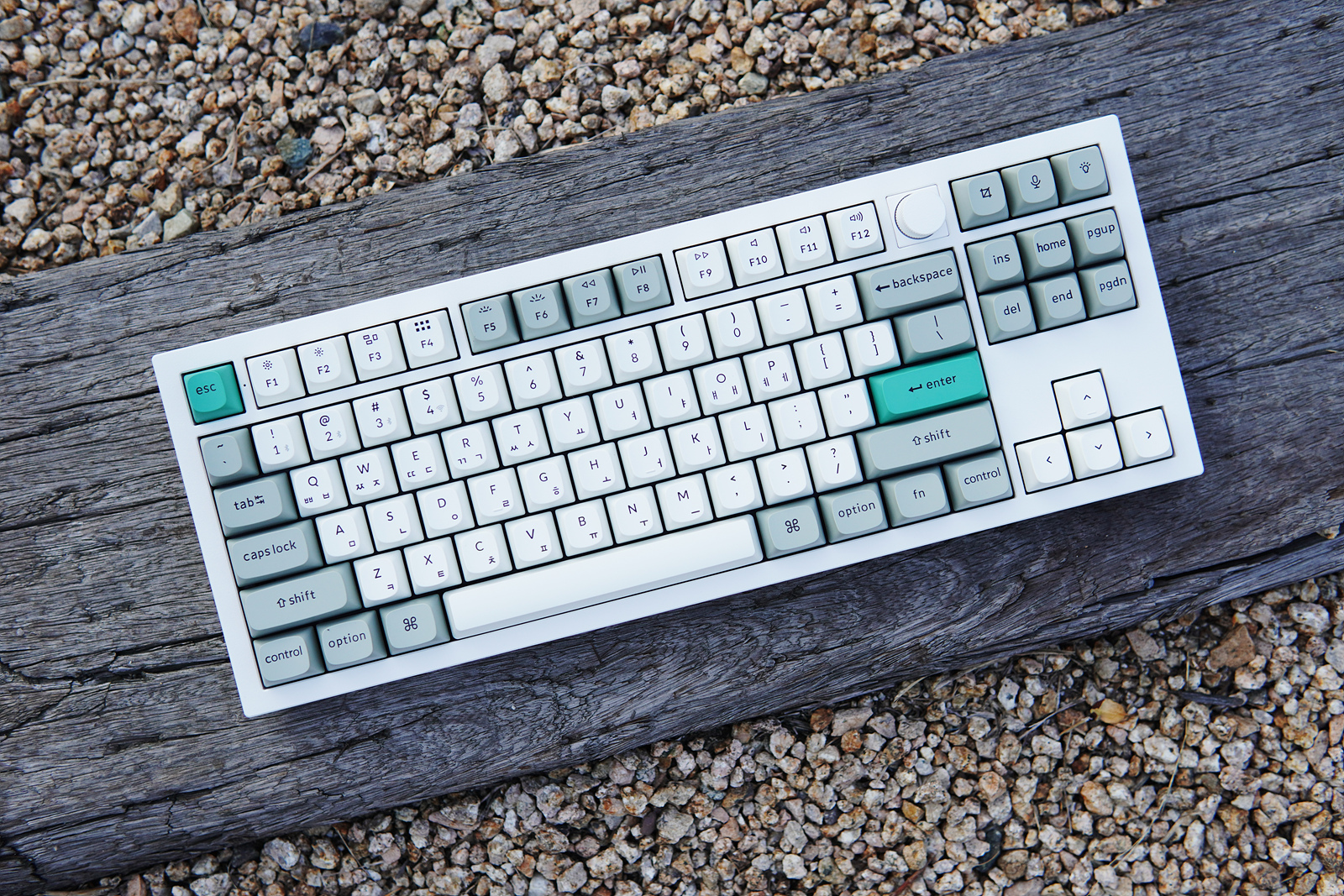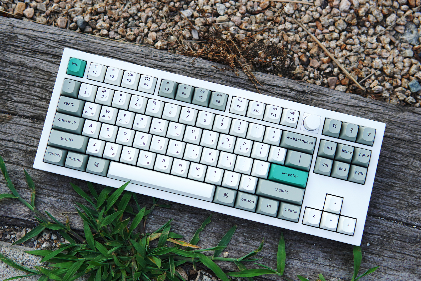 Esc, Enter 두 개의 키캡은 초록색으로 포인트를 주고 있습니다. 키보드를 좋아하는 분들이라면 아시겠지만 이렇게 포인트 키캡 한 두 개 만으로도 키보드 느낌이 확 달라지게 됩니다.