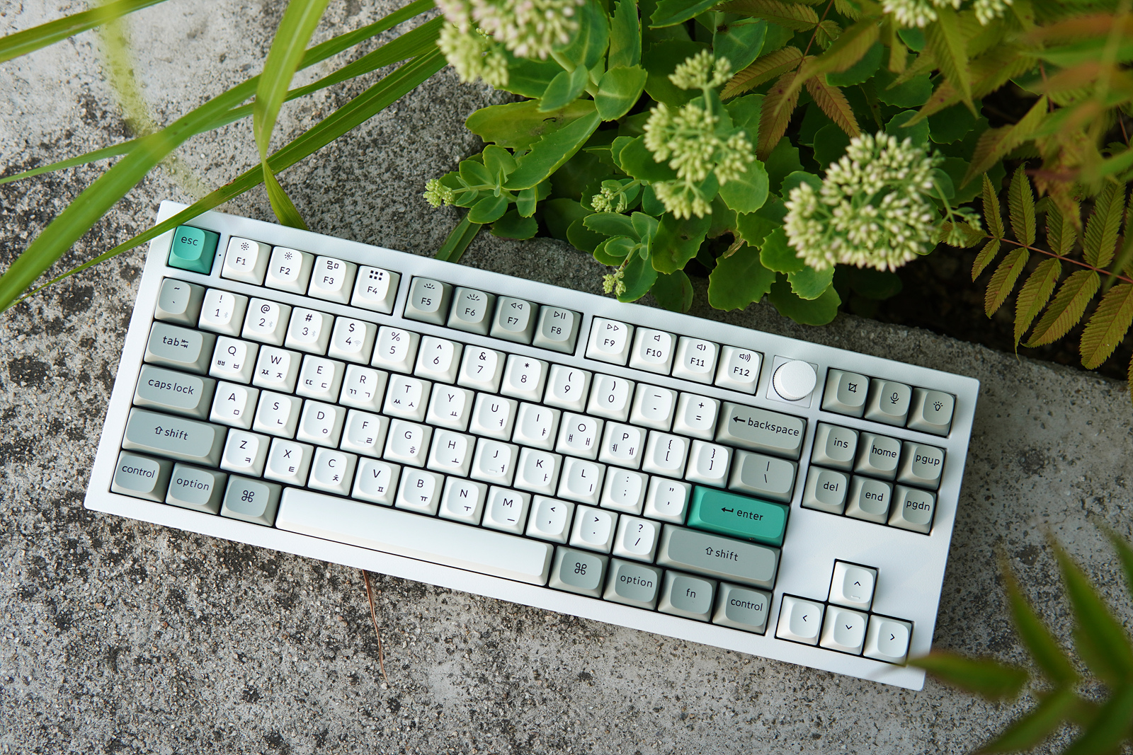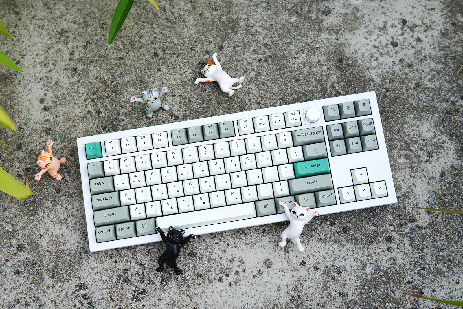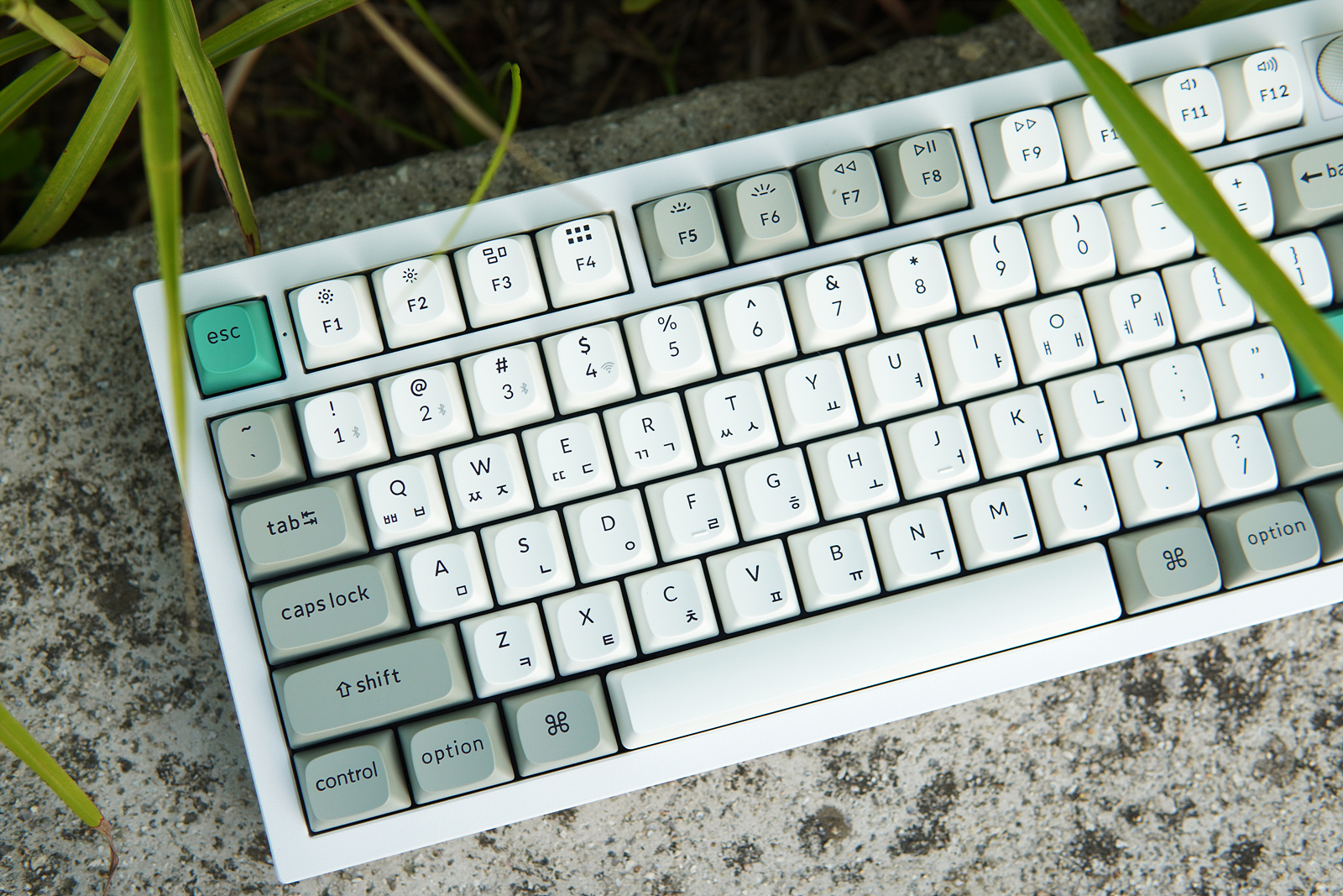 Esc, Enter 두 개의 키캡은 초록색으로 포인트를 주고 있습니다. 키보드를 좋아하는 분들이라면 아시겠지만 이렇게 포인트 키캡 한 두 개 만으로도 키보드 느낌이 확 달라지게 됩니다.