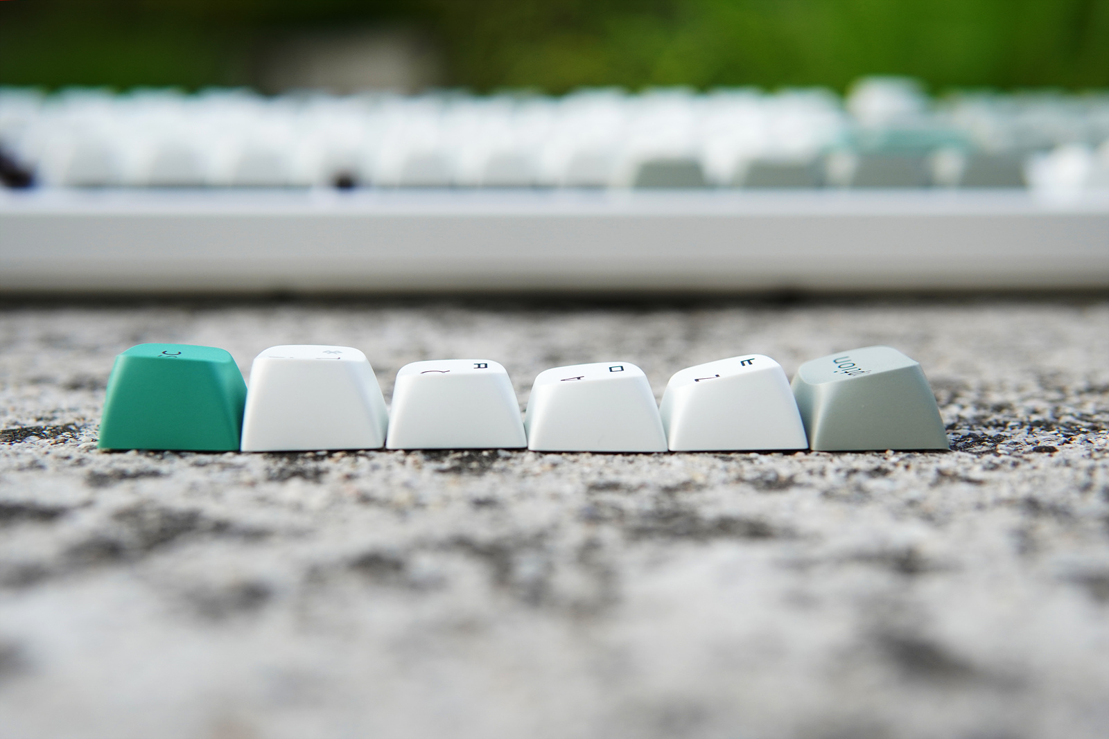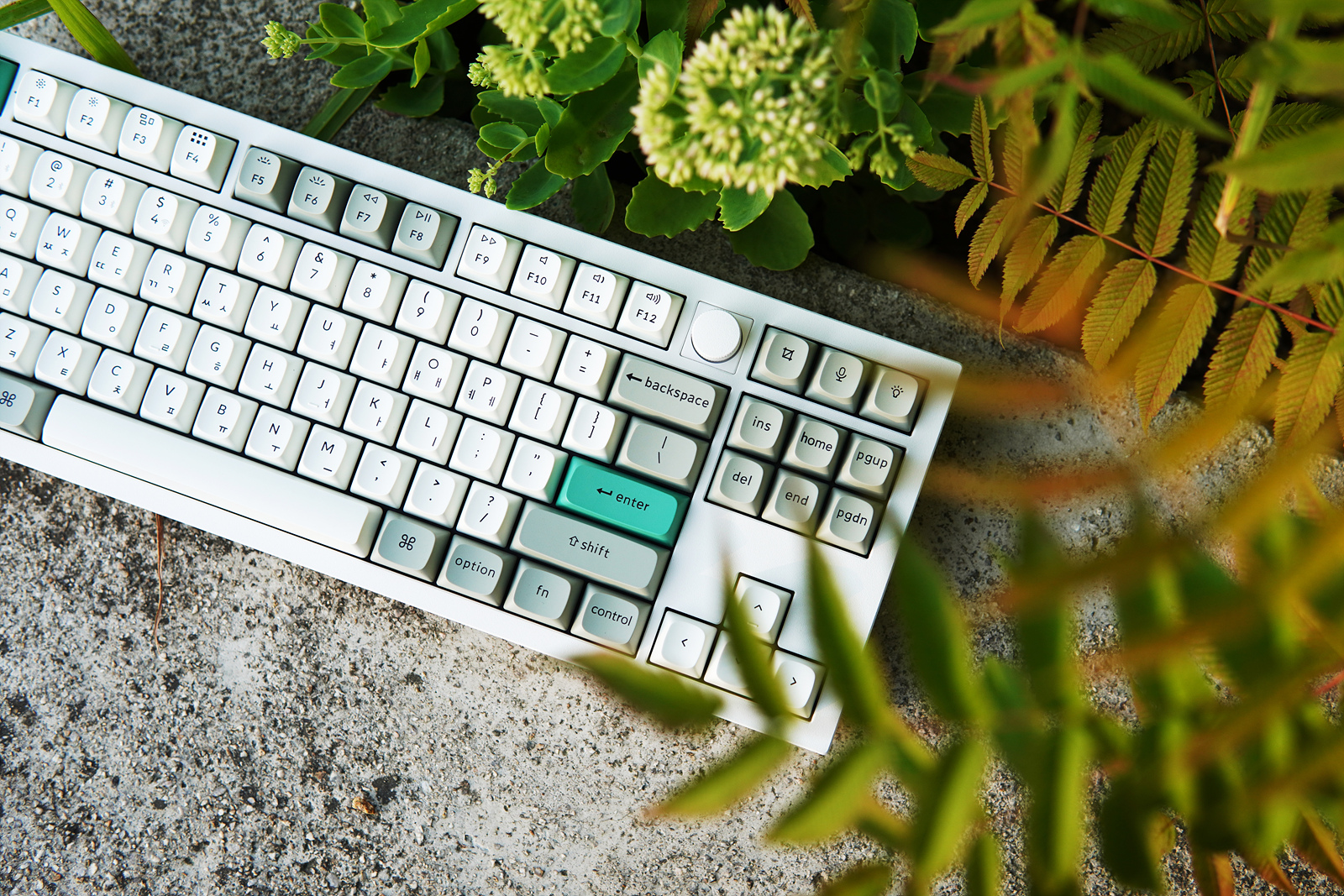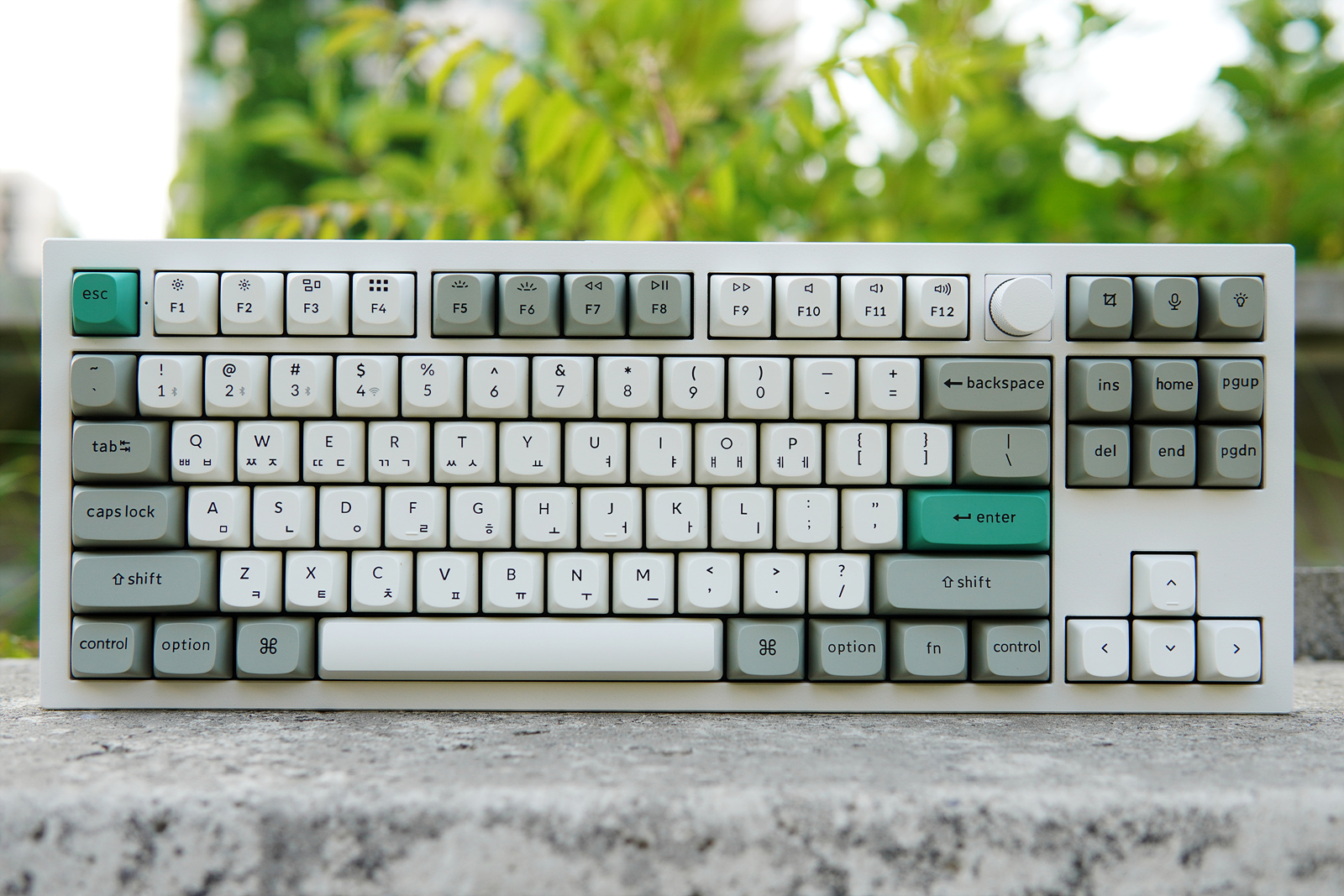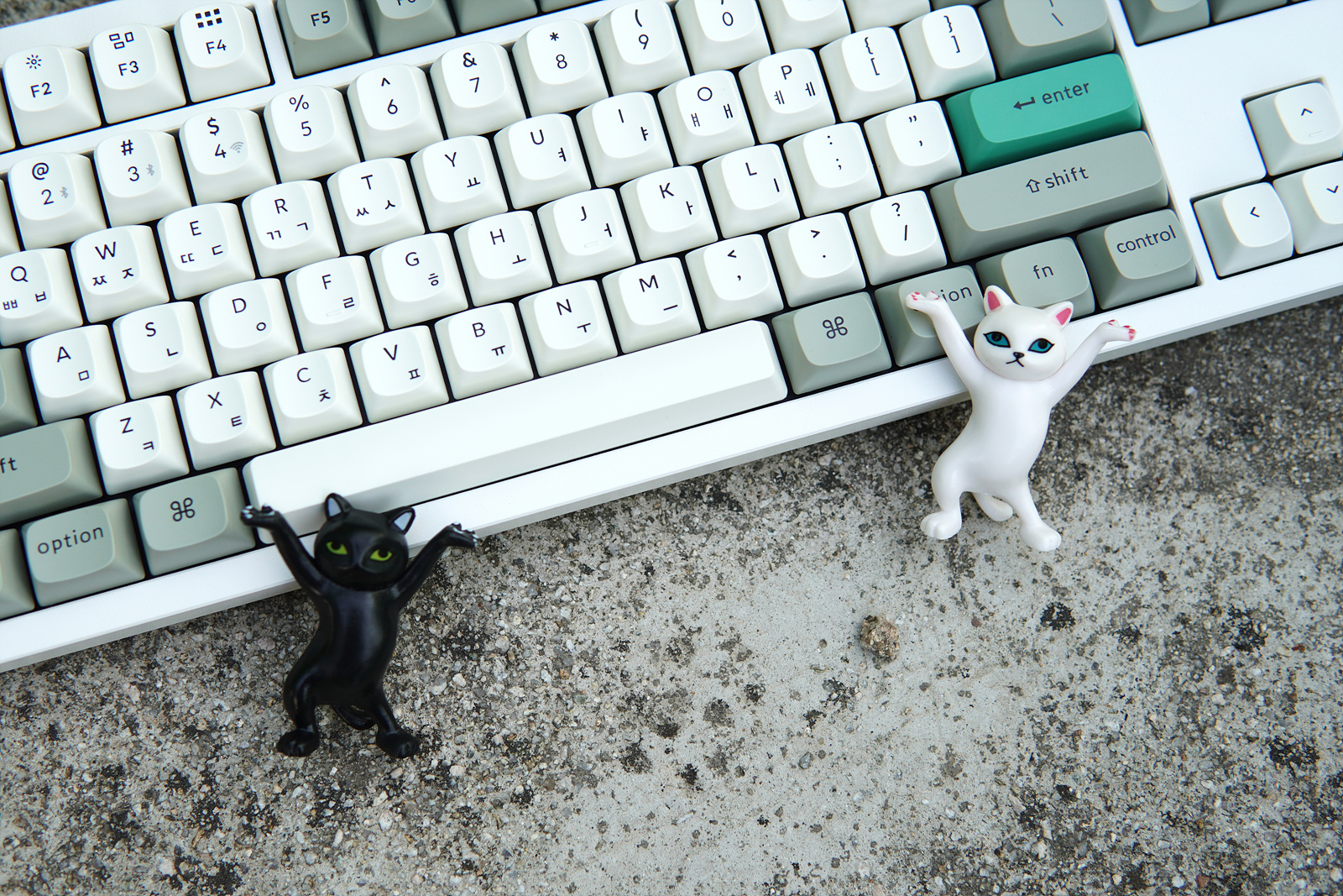 Esc, Enter 두 개의 키캡은 초록색으로 포인트를 주고 있습니다. 키보드를 좋아하는 분들이라면 아시겠지만 이렇게 포인트 키캡 한 두 개 만으로도 키보드 느낌이 확 달라지게 됩니다.