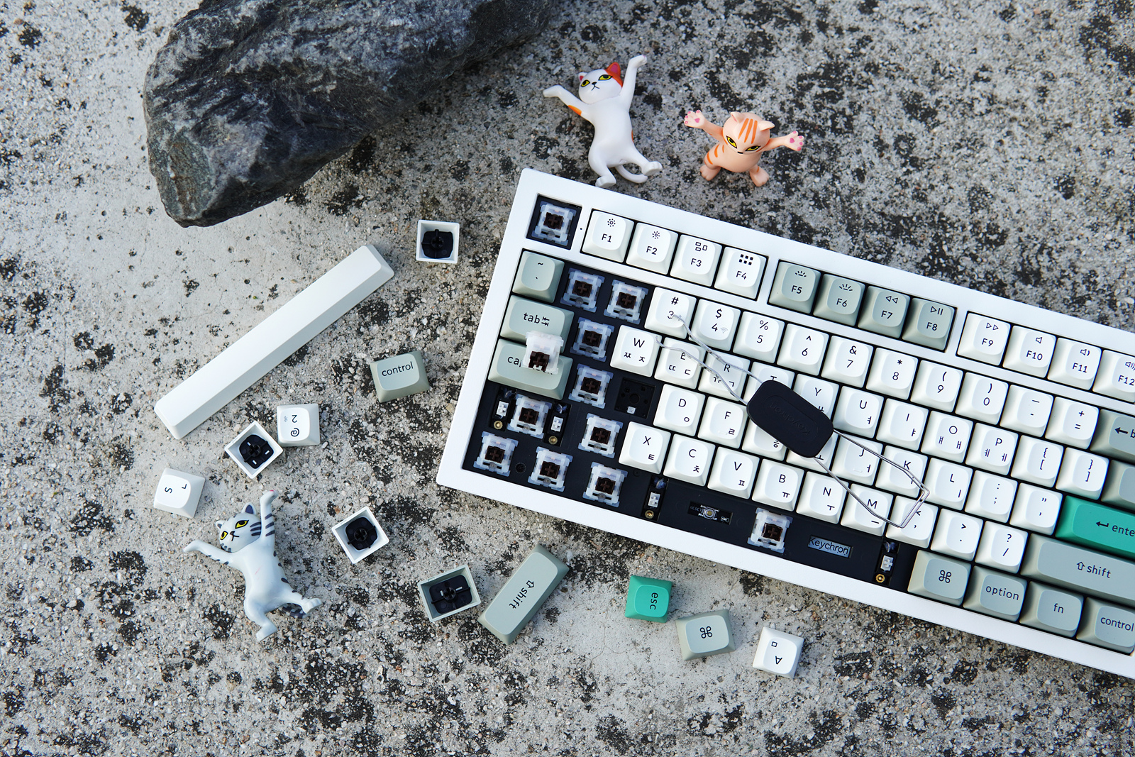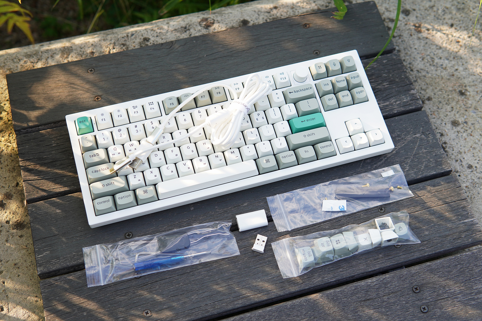 키크론 키보드들의 특징이라고 할 수 있는 Win / Mac용 추가 키캡과 스위치, 키캡 리무버입니다.