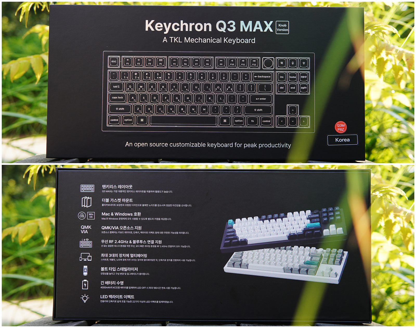 Q3 MAX는 구매할 때 KSA / OSA 두 가지 키캡 프로파일을 선택할 수 있습니다. KSA의 경우 레트로한 맛을 느낄 수 있지만 높이가 조금 높은 편이고 OSA는 OEM과 거의 같은 높이라 이질감 없이 사용할 수 있습니다. 제가 소개하는 키캡은 OSA이며 개인적으로 동글동글함이 느껴지는 OSA를 좀 더 좋아합니다. 키캡의 경우 높이에 따라 타건감이 달라질 수 있으므로 본인에게 잘 맞는 제품으로 선택하시기 바랍니다.