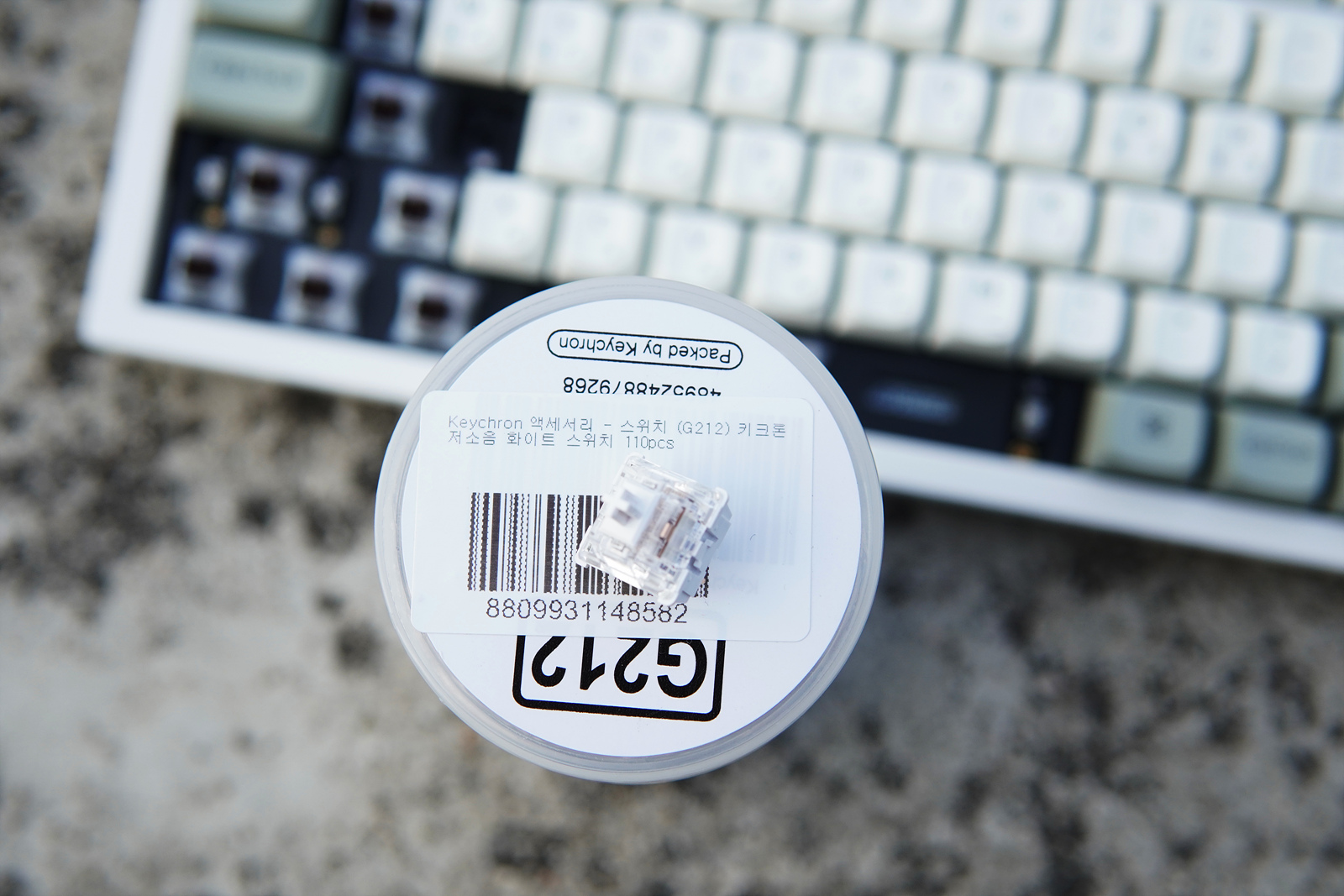 키크론에서는 키저갈(키크론 저소음 갈축) / 키저바 (키크론 저소음 바나나) / 키저화 (키크론 저소음 화이트)를 새롭게 선보였는데 이번에는 키저화(화이트)를 선택했습니다. (아래 타건 영상에서 자세하게 다루겠습니다.)