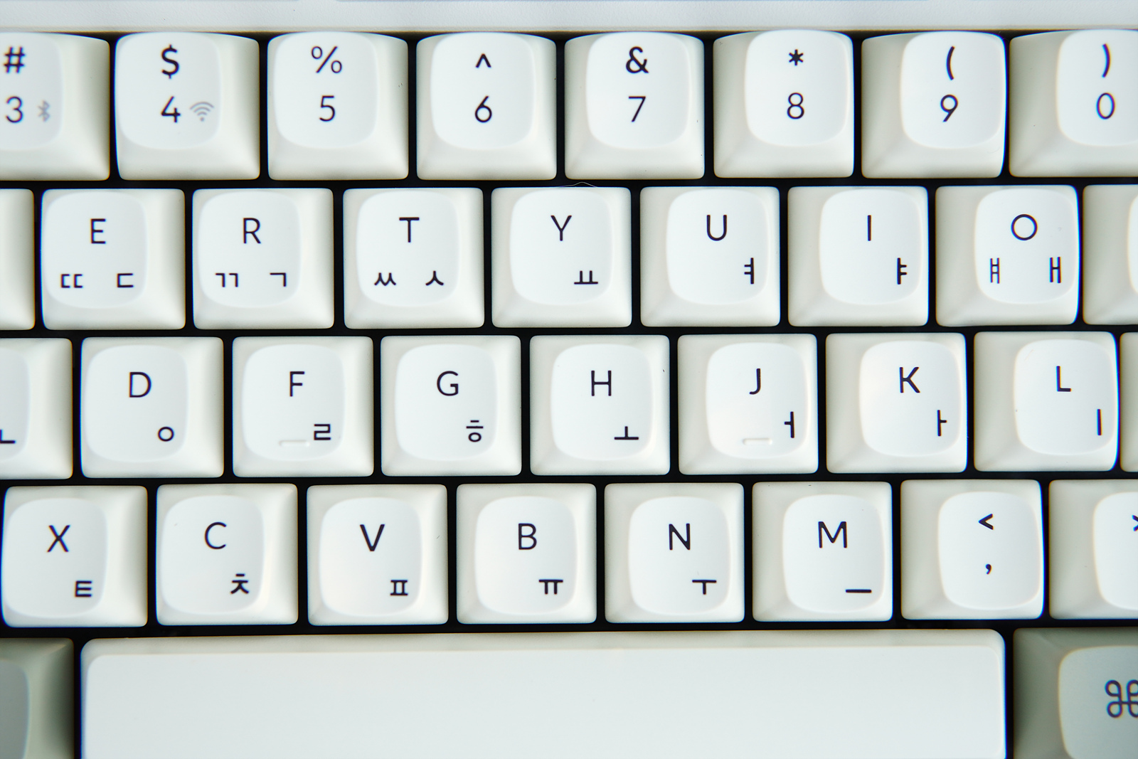 Q3 MAX는 블랙 / 화이트 두 종류로 소개하는 제품은 화이트입니다. 스노우 화이트 같은 흰색이 아닌 아이보리가 살짝 들어간 느낌이라 레트로한 감성을 좋아하는 저는 마음에 들더군요. 화려한 키보드들도 예쁘지만 이런 색이 질리지 않고 오랫동안 사용할 수 있으며 포인트 키캡뿐 아니라 따로 구입한 키캡으로 바꿀 때에도 좋습니다.