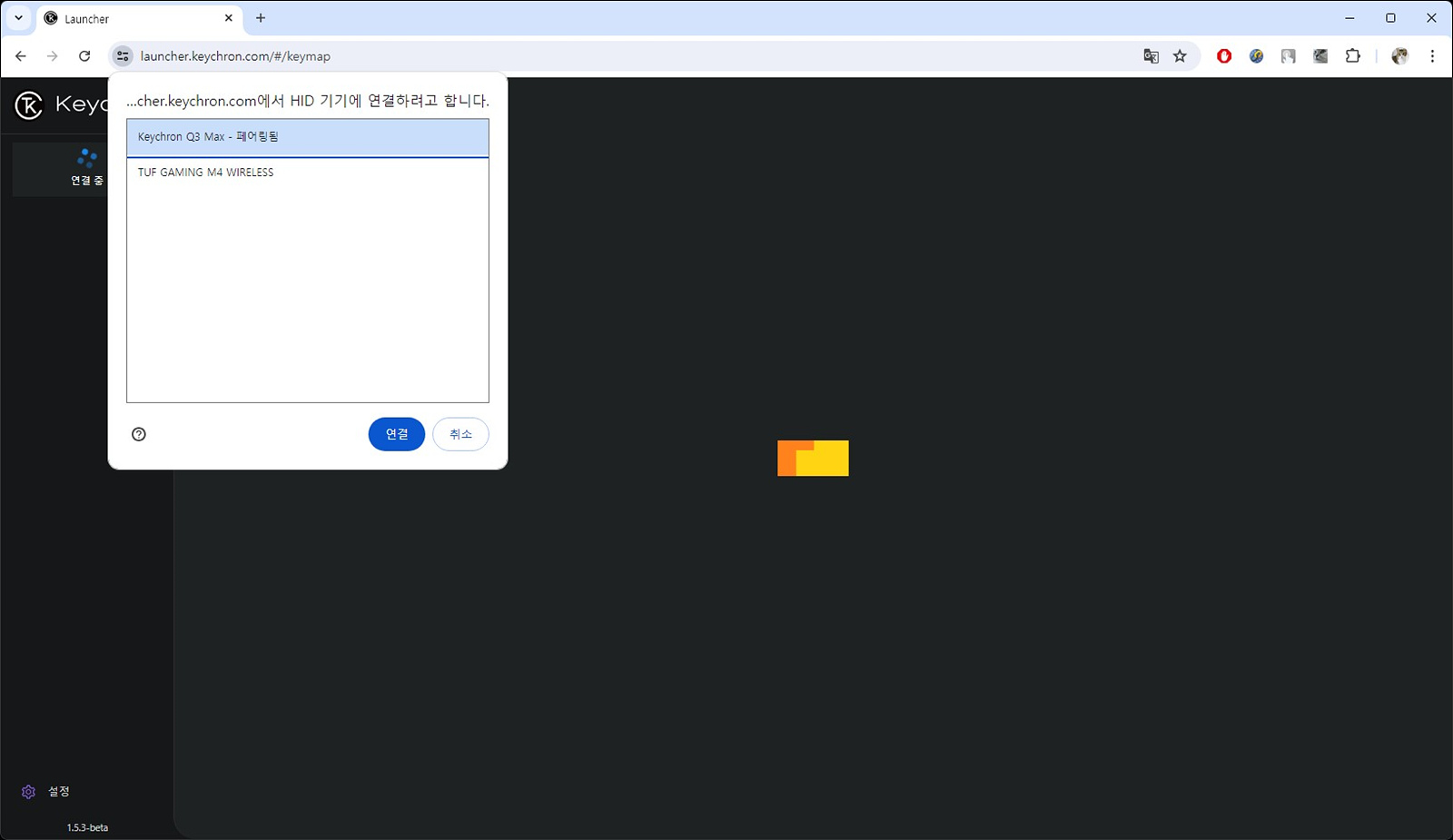 Q3 MAX는 기존의 VIA 연결과는 다르게 키크론 런처를 통해 더욱 편리하게 쉽게 설정이 가능합니다. 런처 사이트의 접속은 크롬, 엣지, 사파리 상관없이 모두 지원하고 있으며 연결 버튼을 누르면 키보드를 확인할 수 있습니다. 키크론 런처는 VIA를 지원해야 사용할 수 있습니다. (기종 불문)