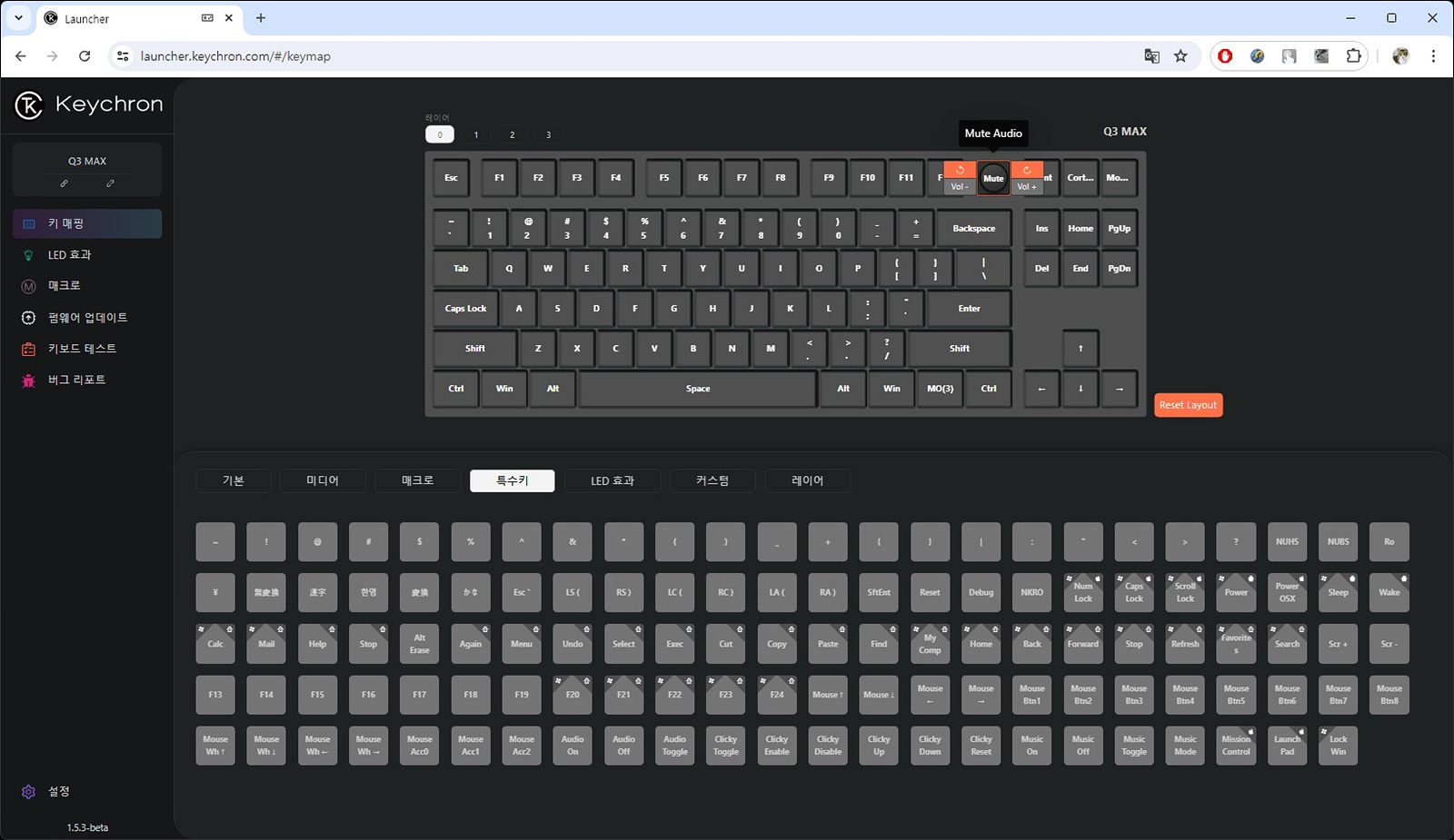 Q3 MAX는 기존의 VIA 연결과는 다르게 키크론 런처를 통해 더욱 편리하게 쉽게 설정이 가능합니다. 런처 사이트의 접속은 크롬, 엣지, 사파리 상관없이 모두 지원하고 있으며 연결 버튼을 누르면 키보드를 확인할 수 있습니다. 키크론 런처는 VIA를 지원해야 사용할 수 있습니다. (기종 불문)