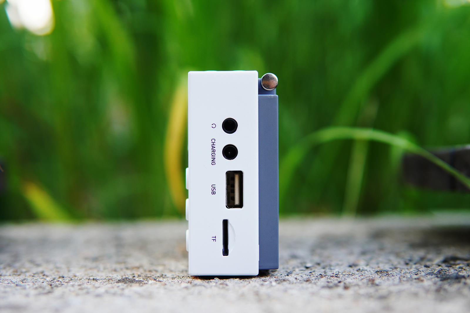 일반적인 블루투스 스피커보다는 작은 크기이지만 포켓 방식의 휴대용 라디오를 생각한다면 약간 큰 편으로 디자인은 상당히 깔끔한 편입니다. E2의 디자인이나 크기 그리고 무게까지 모두 준수한 편이었는데 개인적으로 스트랩이 없다는 건 아쉽더군요. 기기의 특성을 생각한다면 가지고 다니면서 사용하는 경우가 더 많을 텐데 가방에 고정하거나 손목에 걸어서 사용한다면 더욱 편리했을 텐데 말이죠.