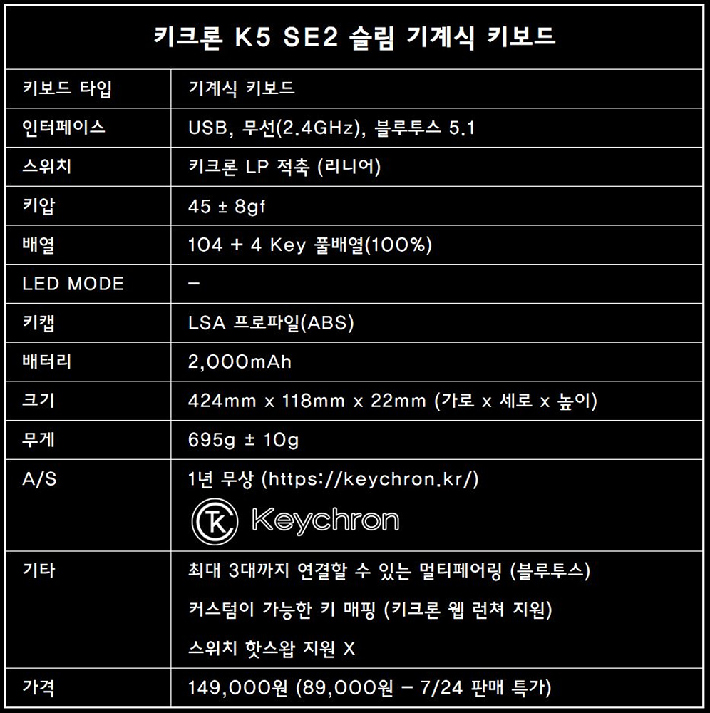 K5 SE2 키보드 상세정보 바로 가기