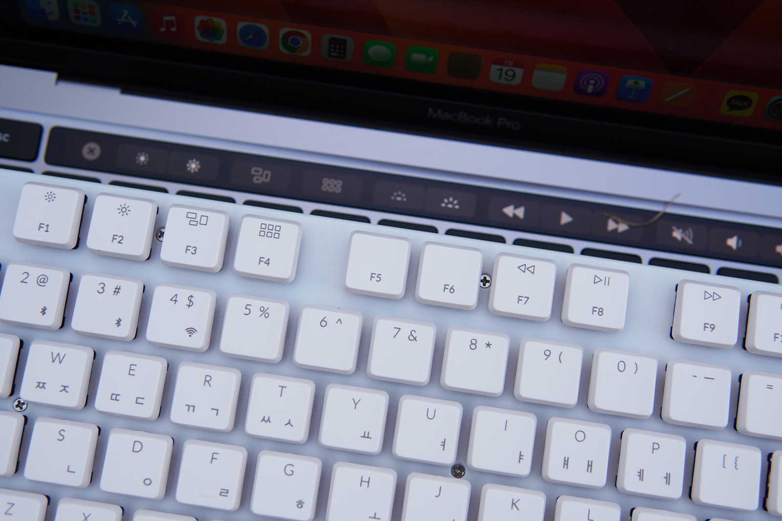 키크론 키보드라면 맥, 맥북에서도 별도의 키 매핑 없이 기능키를 그대로 사용할 수 있습니다. K5 SE2는 non-LED 제품이라 F5, F6(키보드 밝기 조절) 기능은 따로 없습니다.