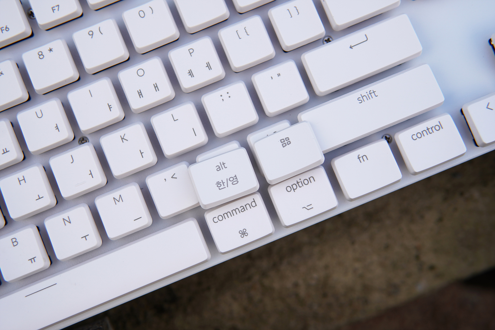 사용하는 OS에 맞게 기본 구성품에 포함된 키캡으로 교체할 수 있습니다. 요즘은 이렇게 추가 키캡이 포함된 제품이 많아졌지만 키크론 키보드는 아주 예전부터 기본이었죠.