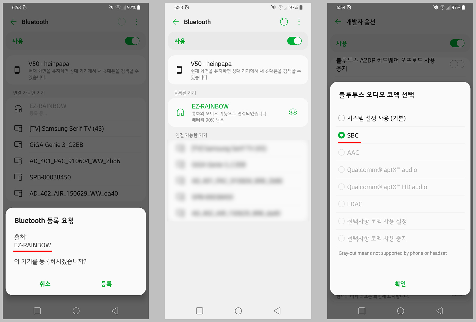 NFC를 이용하거나 일반적인 블루투스 기기들과 마찬가지로 쉽게 페어링을 할 수 있습니다. 아쉽지만 AAC는 지원하지 않고 SBC 코덱만 사용할 수 있습니다. 이 정도 스펙에 SBC가 단점이라고 생각하지는 않지만 개인적으로 음감용으로 나온 스피커라면 그래도 AAC는 지원해야 한다고 생각합니다.