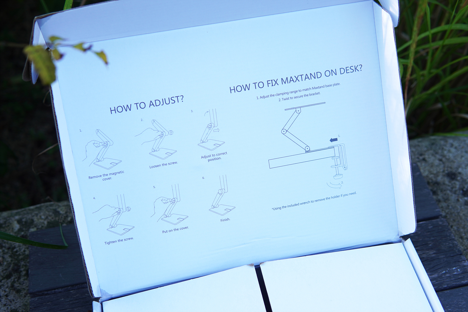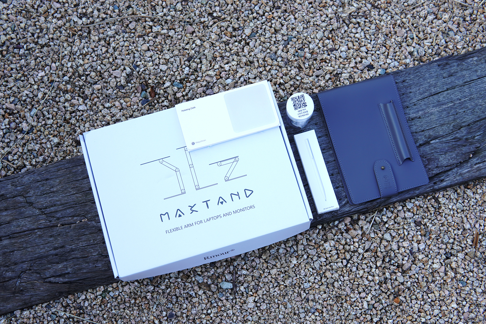 태블릿이나 노트북을 거치할 수 있는 MAXTAND라는 아주 특이한 스탠드인데 일반적인 거치뿐 아니라 모니터 암처럼 책상에 고정해서 사용할 수 있는 제품이더군요. 맥북에 딱 맞을 거 같습니다. ^^