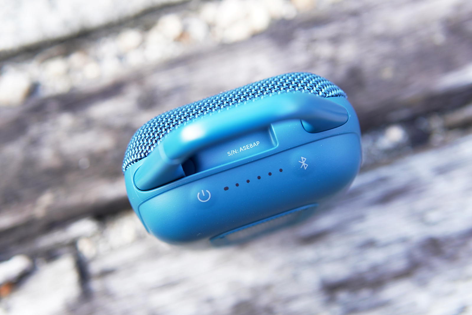 전원 버튼을 약 1초 정도 누르면 스피커가 켜지는데 왼쪽의 LED는 블루투스 상태를, 오른쪽 5개의 동그란 LED로 배터리 잔량을 확인할 수 있습니다. 배터리 LED는 시간이 지나면 꺼지며 전원버튼을 한번 누르면 확인할 수 있습니다. LED의 색으로 표시하거나 2-3개의 LED만 있는 제품들에 비해 더 직관적으로 배터리 잔량을 확인할 수 있는 장점이 있지만 LED 배치를 반대로 하는 편이 좀 더 좋았을 거라 생각되더군요. 블루투스 버튼은 오른쪽에 있는데 LED는 왼쪽에 있으니 살짝 거슬리더라고요. 실제 사용에 지장이 있는 건 아니지만 제품을 소개하는 리뷰어의 입장에서는 이런 부분도 체크를 해야 되니까요. ^^