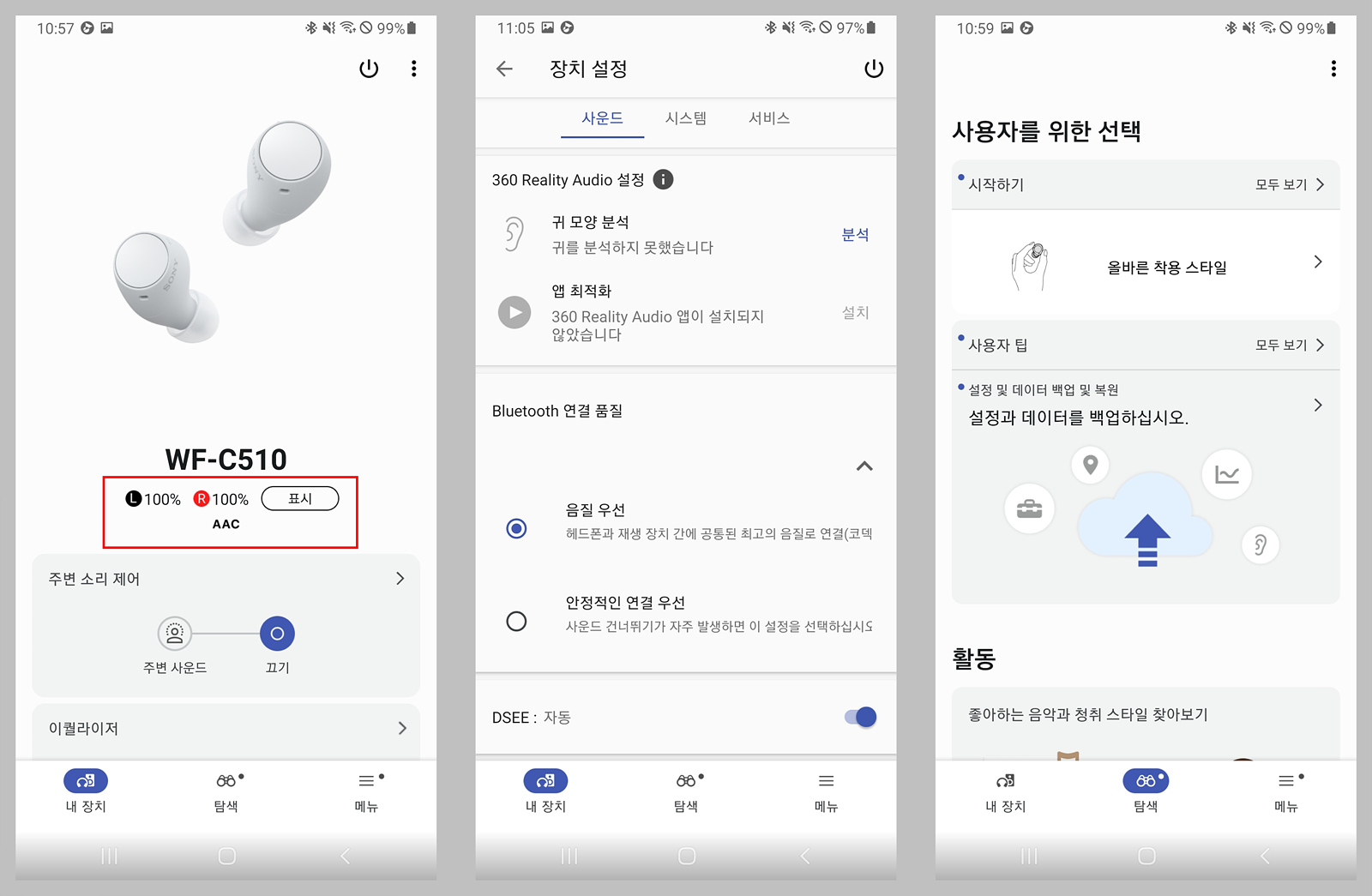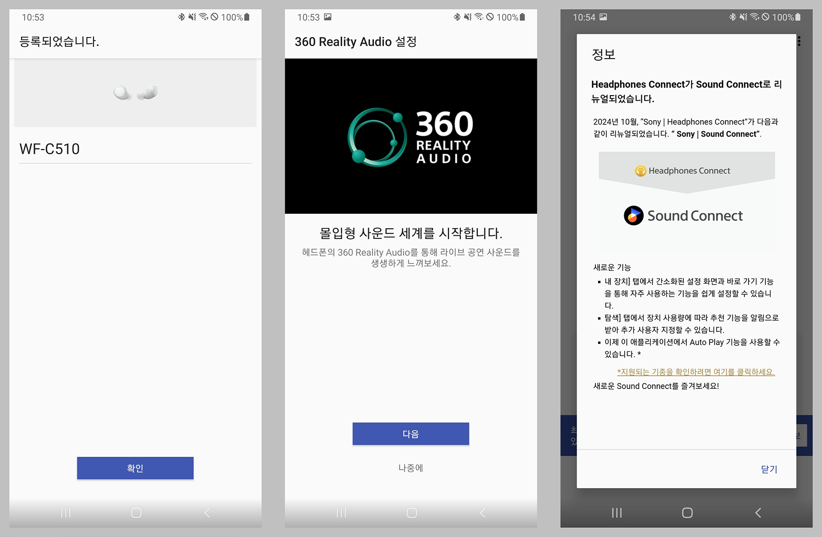 다른 기기와 마찬가지로 소니 전용 앱을 사용할 수 있는데 "헤드폰 커넥트"에서 "사운드 커넥트"로 변경이 됐네요.