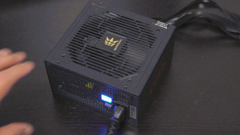 파워 내부에는 120mm FDB 방식의 쿨러가 사용되었으며 파워 뒤쪽의 파란색 스위치를 통해 제로 팬(Zero FAN) 모드를 선택할 수 있습니다. 제로 팬 기능은 내부 온도가 50℃ 이하에서 팬이 정지되어 저소음을 원하는 사용자들에게는 보다 조용한 환경을 만들어 줄 수 있습니다.
