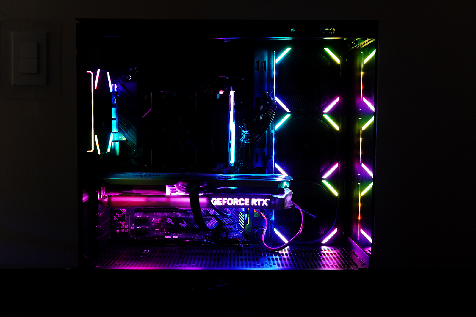 측면 3개, 후면 한 개로 총 4개의 쿨러가 기본적으로 제공이 되며 팬 컨트롤러를 통해서 rpm 제어와 RGB 모드를 따로 선택할 수 있습니다. (소켓이 한 곳이 더 남아서 추가로 팬을 장착해서 사용할 수 있습니다.)