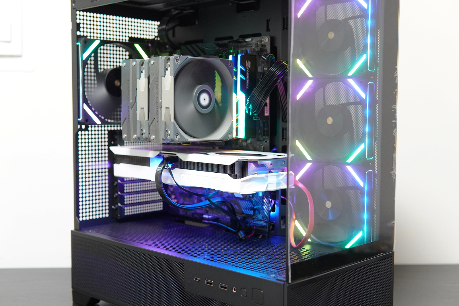 전원, RGB, USB 포트는 케이스의 위쪽이 아닌 측면에 자리 잡고 있는데 책상 위에 케이스를 놓고 사용하는 분들에게는 딱 맞는 위치라고 할 수 있지만 바닥에 놓고 사용하는 분들이라면 다소 불편할 수 있겠죠. 이 부분은 사용하는 환경에 따라 호볼호가 나뉠 거라 생각합니다.