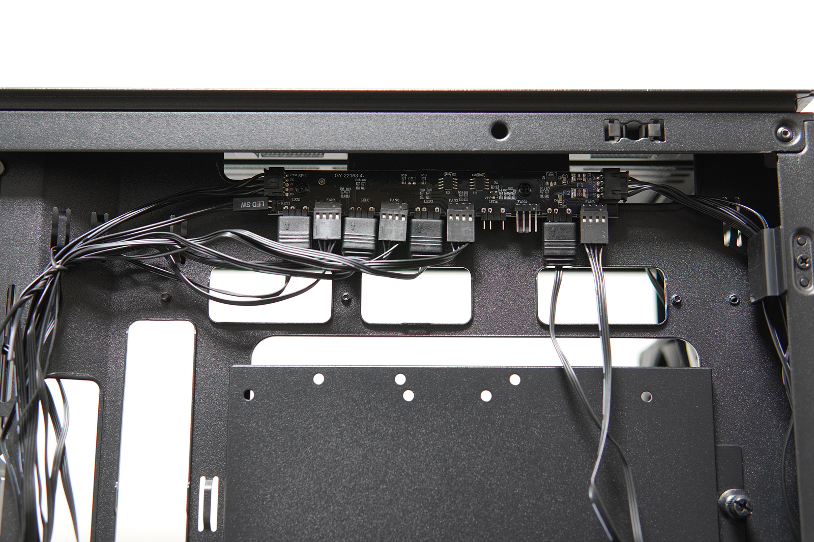 BTF가 지원되지 않는 일반 메인보드나 VGA의 케이블을 정리할 수 있는 홀(hole)은 적재적소에 배치되어 있는데 별도의 고무마개가 없는 부분은 살짝 아쉽더군요. (아주 고가의 케이스는 아니지만 그래도 10만 원 정도라면 사용자들의 기대도 좀 높아질 테니까요.)
