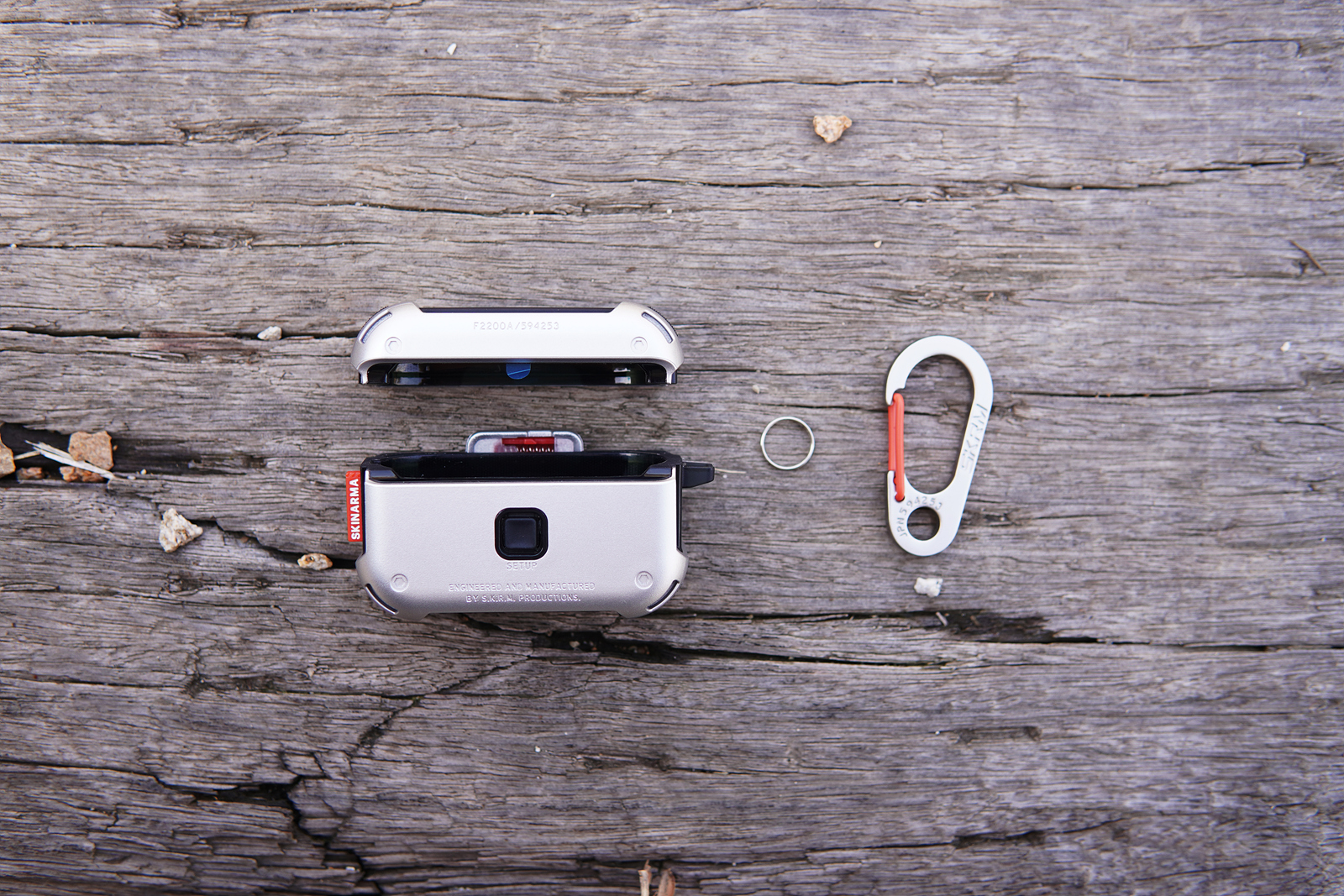 구성품은 두 개로 나뉜 케이스, 링, 카라비너로 구성이 되어있습니다.
