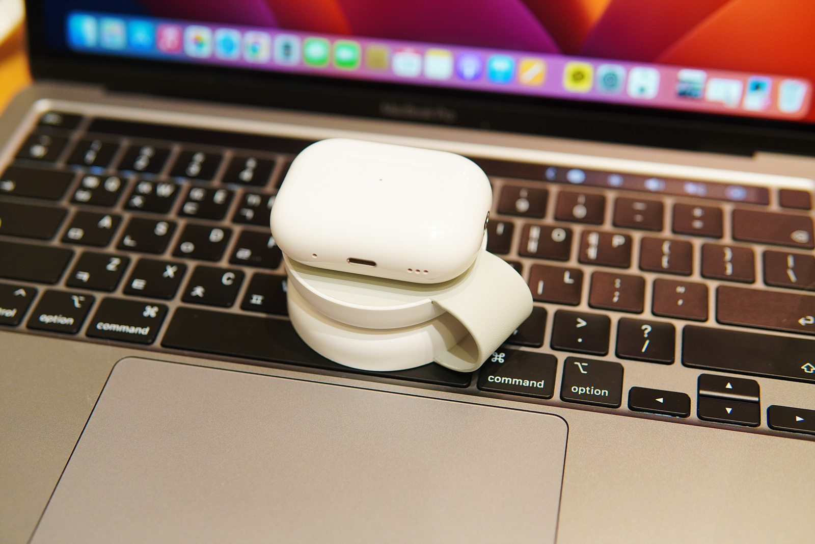 오른쪽의 MFW 충전 모듈에서는 애플워치뿐 아니라 에어팟 프로를 같이 충전할 수 있으며 맥세이프 기능으로 모듈을 꺼내서 세운채로 고정해서도 사용할 수 있습니다.