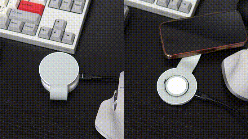 충전기를 반대로 겹치면 충전 중에도 거치대의 역할을 할 수 있습니다.
