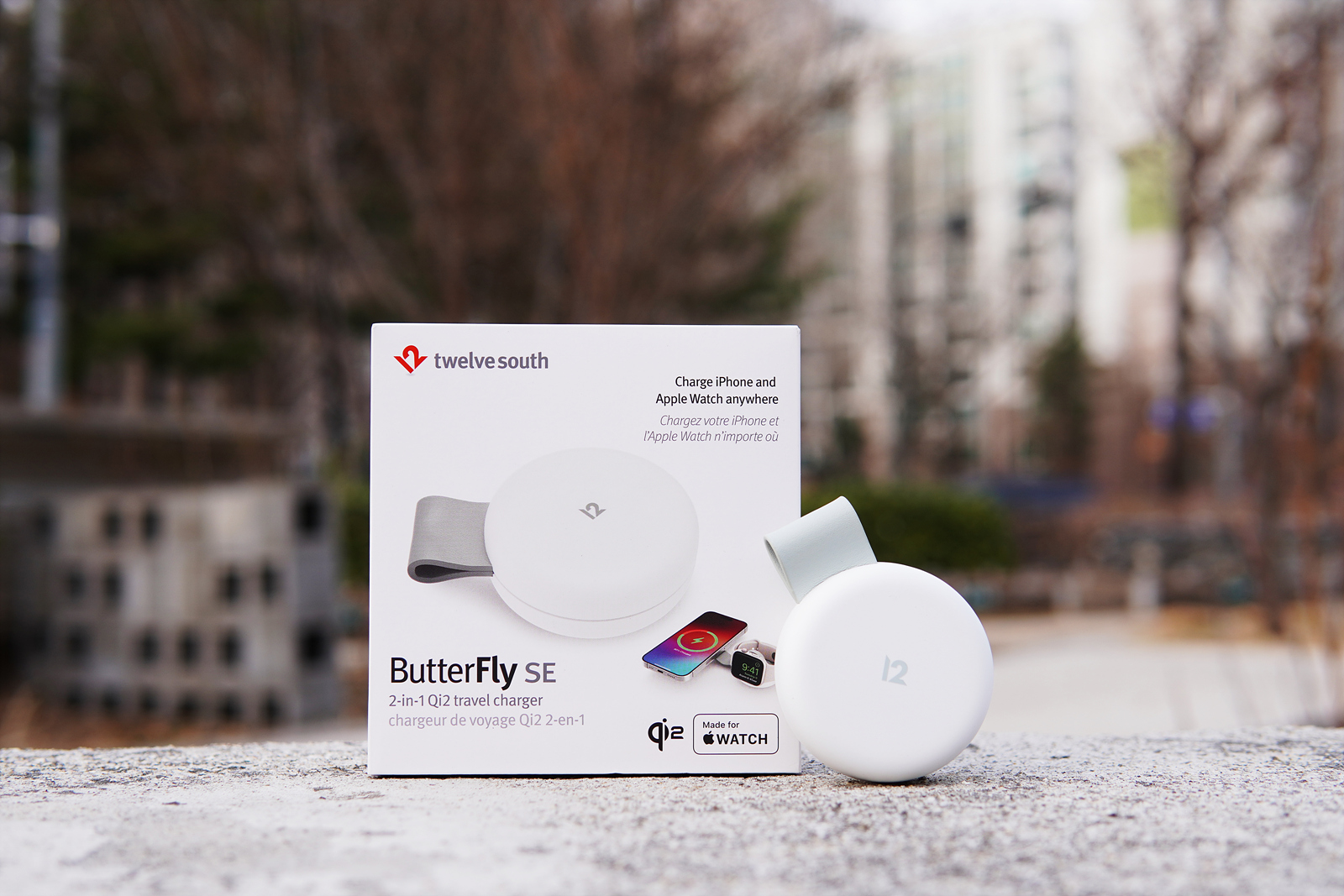이번에 소개하는 트웰브사우스 버터플라이 SE는 이런 불편함을 한 번에 해결할 수 있는 제품으로 실내외 어디서든 편리하게 사용할 수 있으며 현재 판매되고 있는 2 in1 마그네틱 충전기 중 가장 작은 크기를 자랑하고 있습니다.