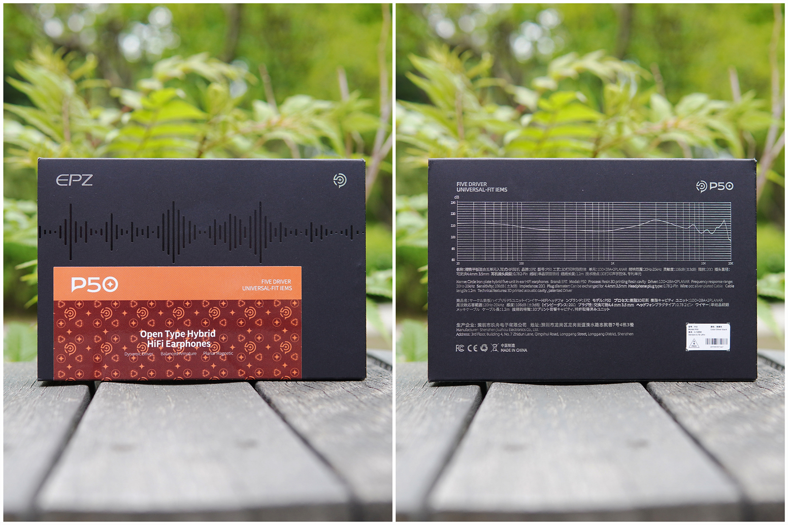 박스에는 제품의 스펙과 함께 주파수 특성(Frequency Response)이 표시되어 있으며 P50의 가장 큰 특징인 3가지 타입의 드라이버를 소개하고 있습니다.
