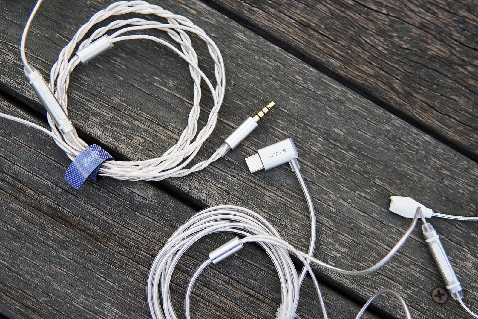 EPZ G20의 가장 큰 특징이라고 할 수 있는 3.5mm / USB Type-C 두 가지 타입의 케이블은 사용하는 기기에 맞게 선택할 수 있습니다. 4극 3.5mm 커넥터 케이블은 트위스트로 페어로 되어 있으며 중간에 리모컨으로 재생과 볼륨을 조절할 수 있습니다. Type-C 케이블 역시 3.5mm와 똑같은 리모컨이 있고 케이블은 조금 다른 형태이며 길이는 조금 더 긴 편입니다. Type-C 케이블은 단순 연결뿐 아니라 별도의 DAC가 있어서 3.5mm 타입과는 전체적으로 다른 소리를 들려줍니다. (이 부분은 아래에서 다시 다루겠습니다.)