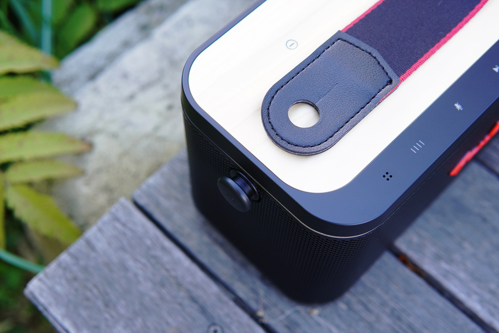 리프의 크기는 그리 크지 않고 2.4kg의 무게 역시 부담이 되는 건 아니지만 들고 다니는 용도보다는 캠핑이나 가까운 거리를 이동하는데 적당한 제품이고 자체 손잡이가 있어서 스피커를 옮길 때 편리하게 사용할 수 있습니다.