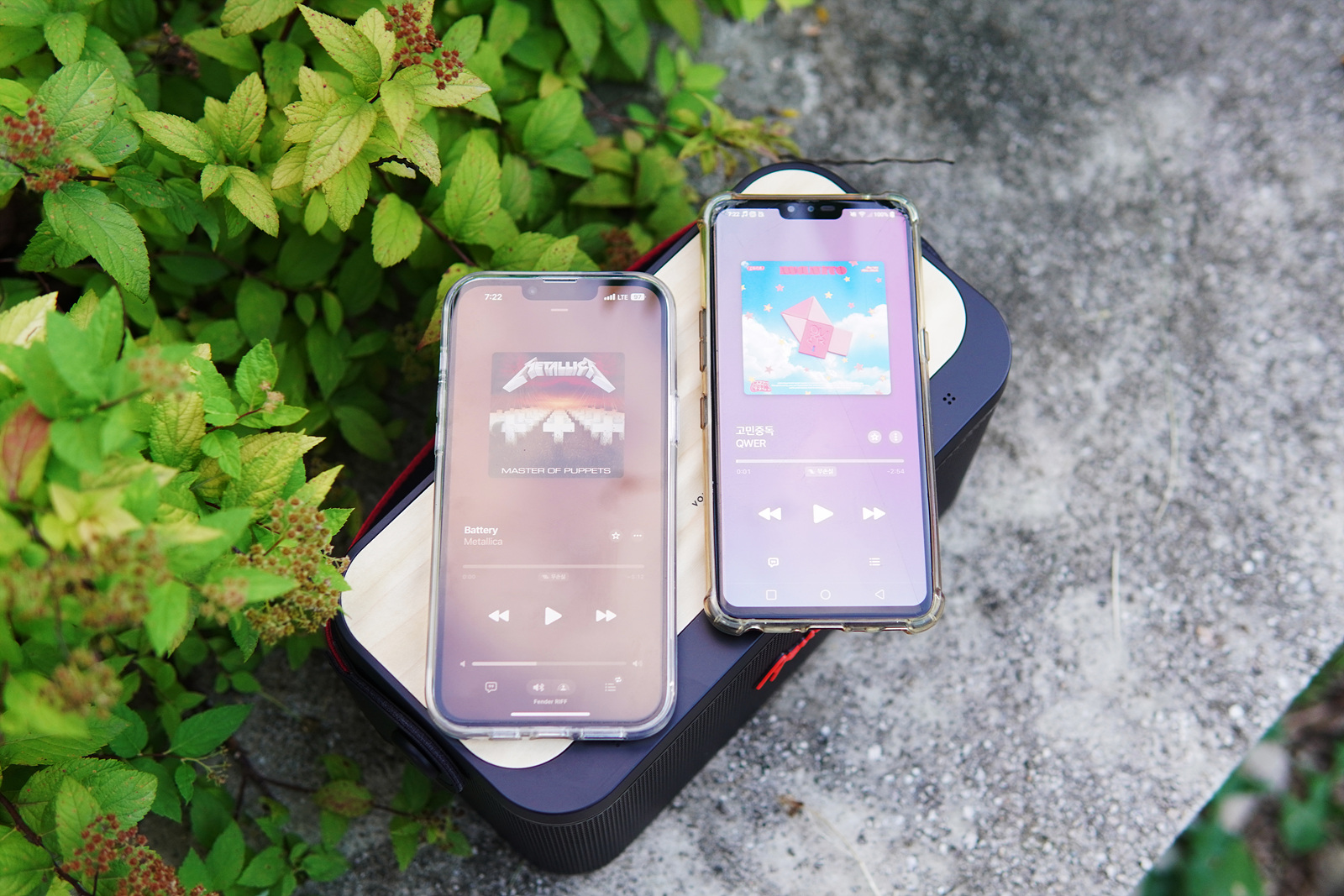 펜더 블루투스 스피커를 사용해 본 분들이라면 아시겠지만 전원이 켜질 때와 기기와 연결(페어링)이 될 때는 특유의 기타 소리로 상태를 확인할 수 있습니다. 언급한 대로 리프는 두 대의 기기를 동시에 연결할 수 있는 멀티포인트가 지원이 되므로 페어링이 되는 기타 소리 역시 두 번이 들려야 하는데 실제로는 한 번 밖에 울리지 않더군요. 여러번 테스트를 해보니 전원이 꺼지면 멀티포인트가 유지되지 않는 문제가 있었습니다. 멀티페어링은 유지가 되어 기존 기기에서 한 번 더 터치를 하면 멀티포인트 기능을 사용할 수 있지만 뭔가 반쪽짜리 기능이라는 생각이 들더군요. 고객센터에 확인해 본 결과 리프 스피커의 종특이라는 답변을 받았습니다. (이 부분은 펌웨어로 꼭 수정이 되길 바랍니다.)