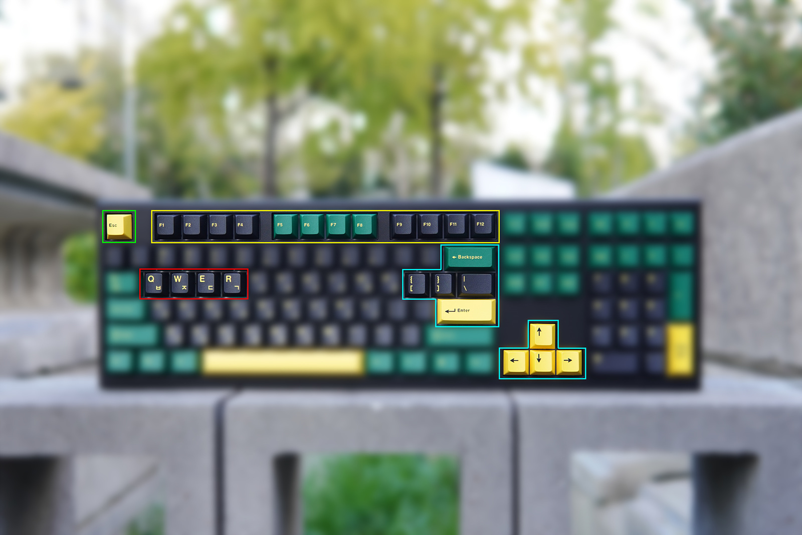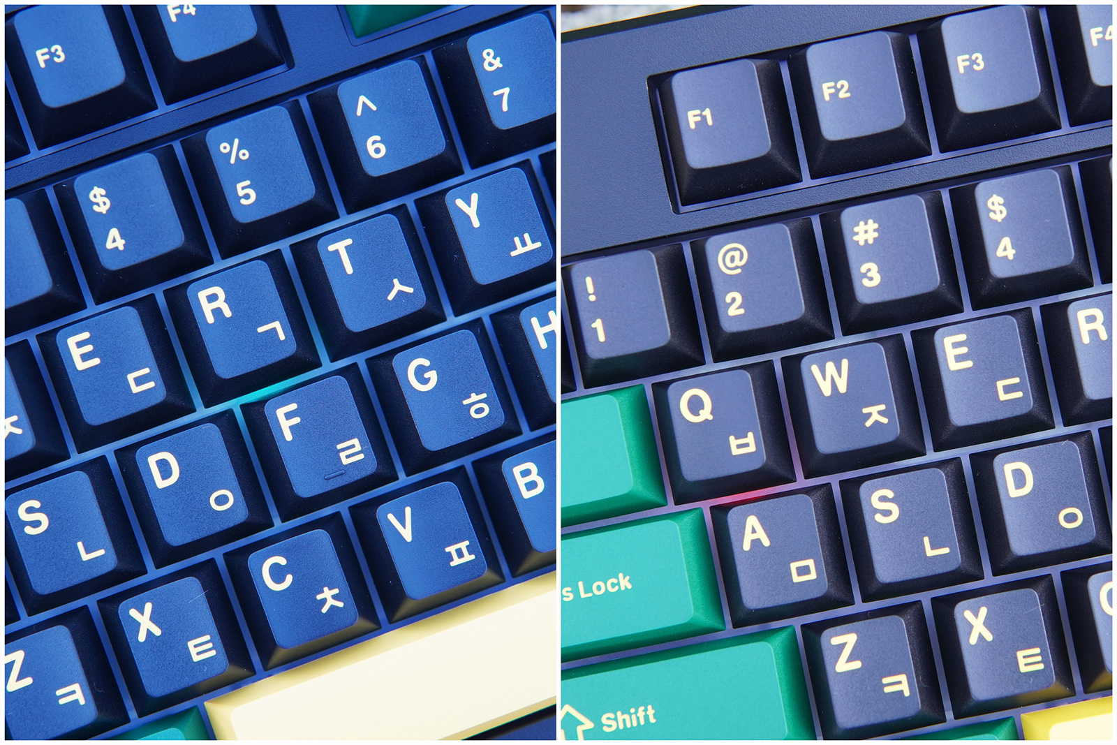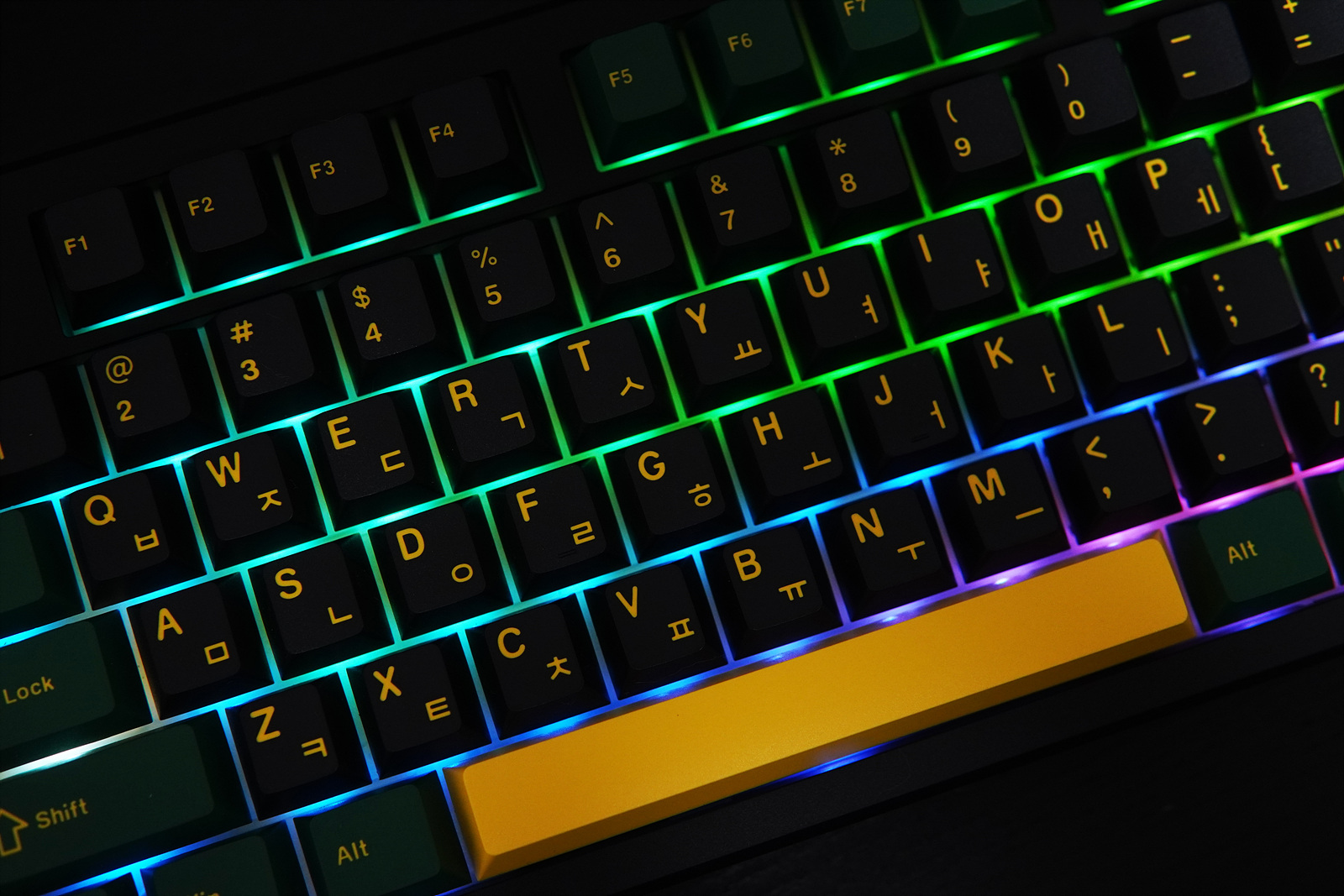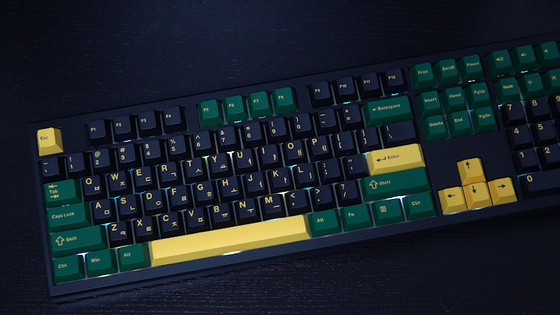 검은색 하우징에 노랑, 초록색 두 가지 톤의 키캡은 슈트 같은 깔끔한 느낌이며 화사한 느낌의 라일락 컬러도 있으니 스위치뿐 아니라 키보드의 색도 취향에 따라 선택할 수 있습니다.
