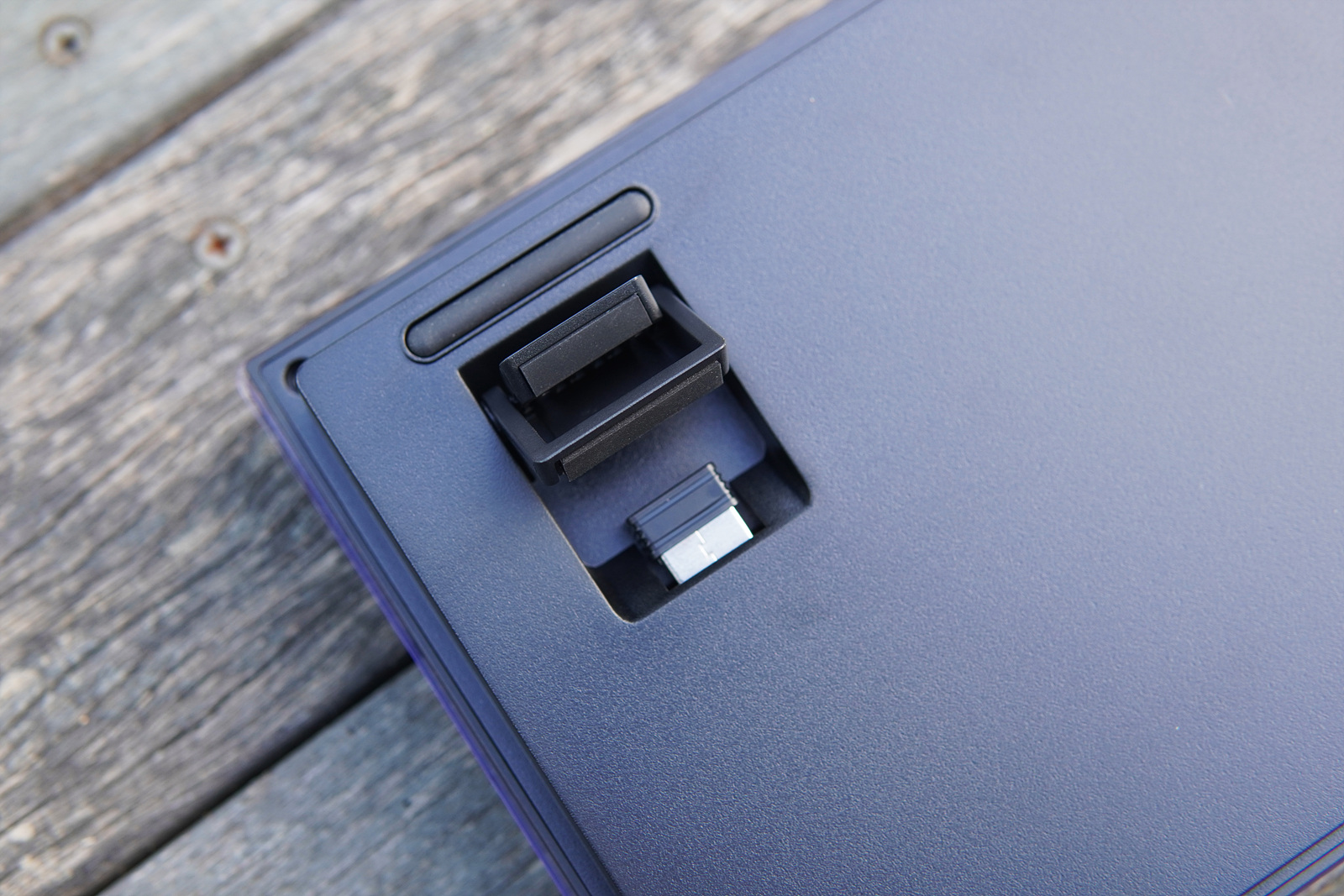 높이 조절용 다리 두 개 모두 실리콘으로 마감이 되어있으며 안쪽에는 무선 수신기(동글)를 보관할 수 있는 공간이 있습니다. 휴대용으로 가지고 다니는 제품은 아니지만 그래도 별도의 공간이 있어서 보관에 용이합니다.