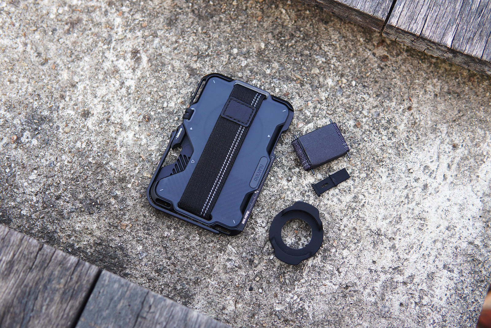 위쪽에 있는 실리콘 재질의 동그란 부속품은 애플의 에어태그(AirTag)를 장착할 수 있는 홀더이고 나머지 두 개는 여분으로 사용할 수 있는 부품들입니다. 아래에서 다시 언급하겠지만 G03 월렛은 에어태그용 홀더를 장착하기 위해서는 약간의 분해 과정을 거쳐야 하는데 이런 부분에 대한 설명서나 안내가 없다는 건 아쉬웠습니다.