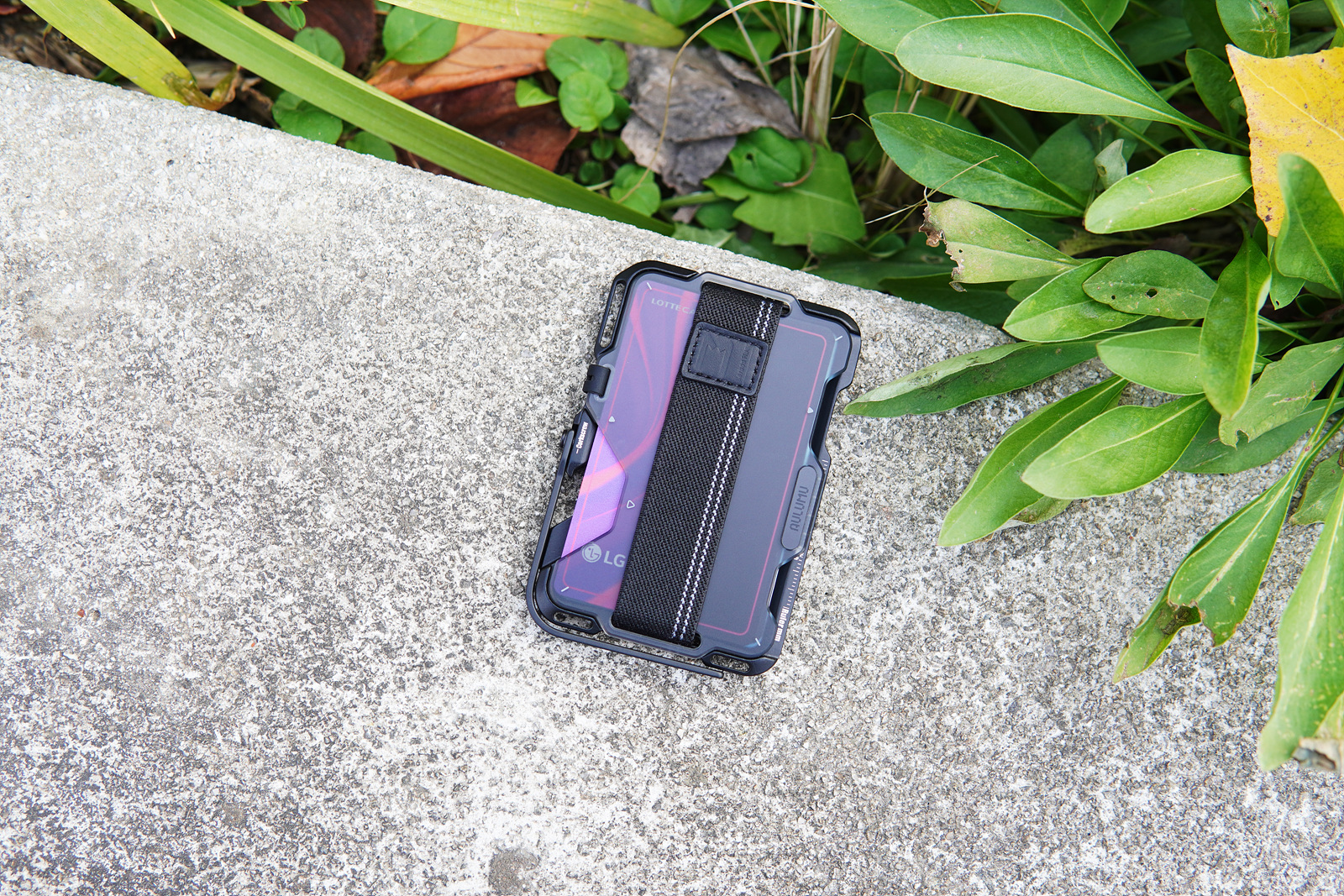 마그네틱 부분 반대편으로 카드를 수납할 수 있는 공간의 재질과 색(color)에 따라 투명 블랙 / 투명 화이트 / 천연가죽 / 카본 파이버 4가지로 선택할 수 있습니다. (소개하는 제품은 투명 블랙입니다.) 가장 위쪽으로는 손가락을 고정할 수 있는 스트랩이 있어서 안전하고 편리하게 사용할 수 있습니다. 이 스트랩은 스마트폰을 고정하는 역할뿐 아니라 최대 12장의 카드를 넣어도 흘러내리지 않도록 고정하는 기능을 수행하기도 합니다.