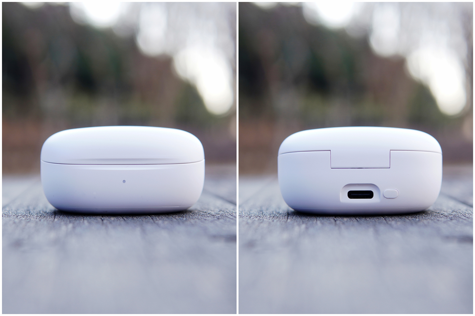 케이스 앞쪽에는 현재 상태를 확인할 수 있는 LED가 있으며 뒤쪽으로 Type-C 충전포트와 페어링 기능을 담당하는 멀티 펑션 버튼이 있습니다. (2초간 누르면 페어링 모드로 진입합니다.)