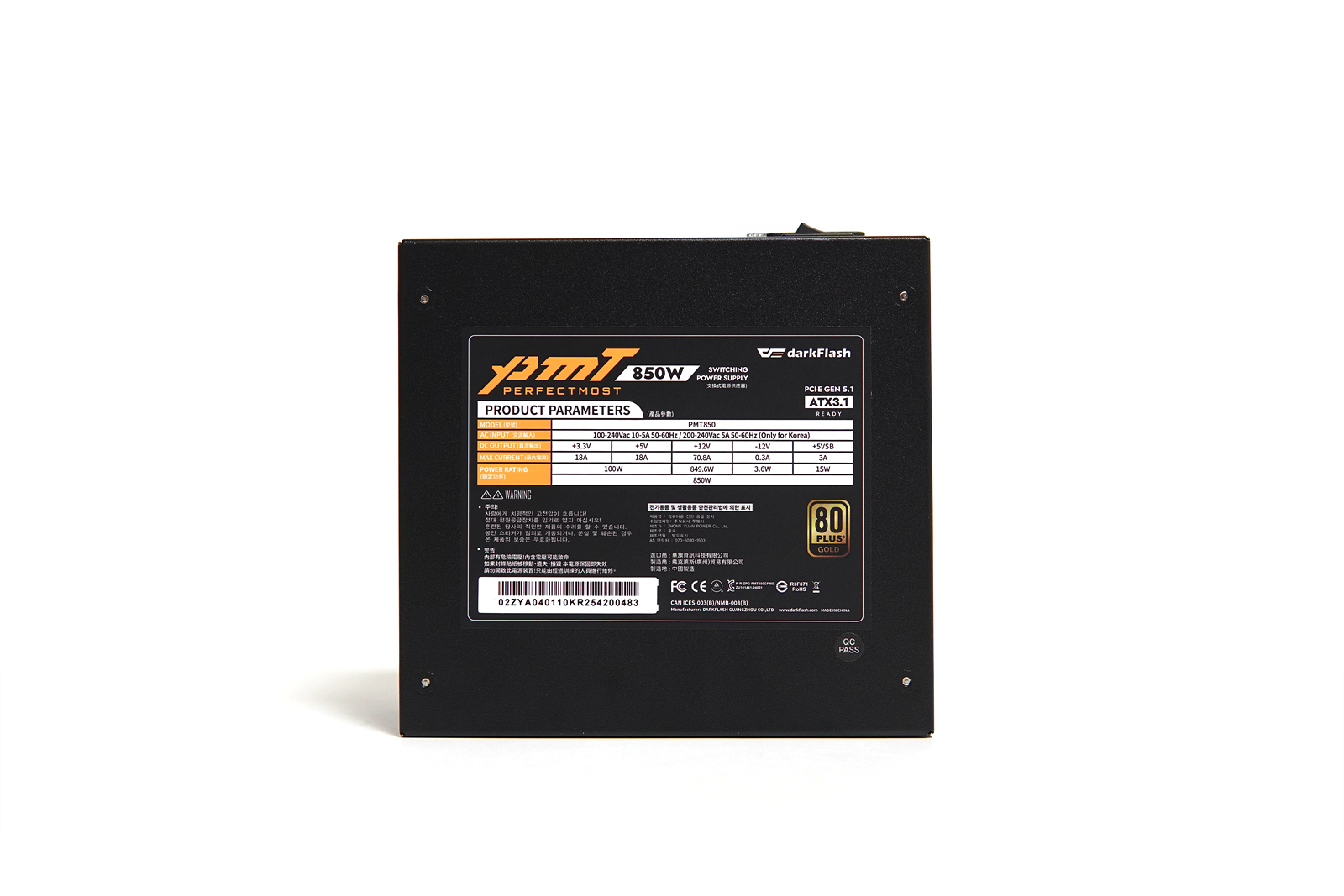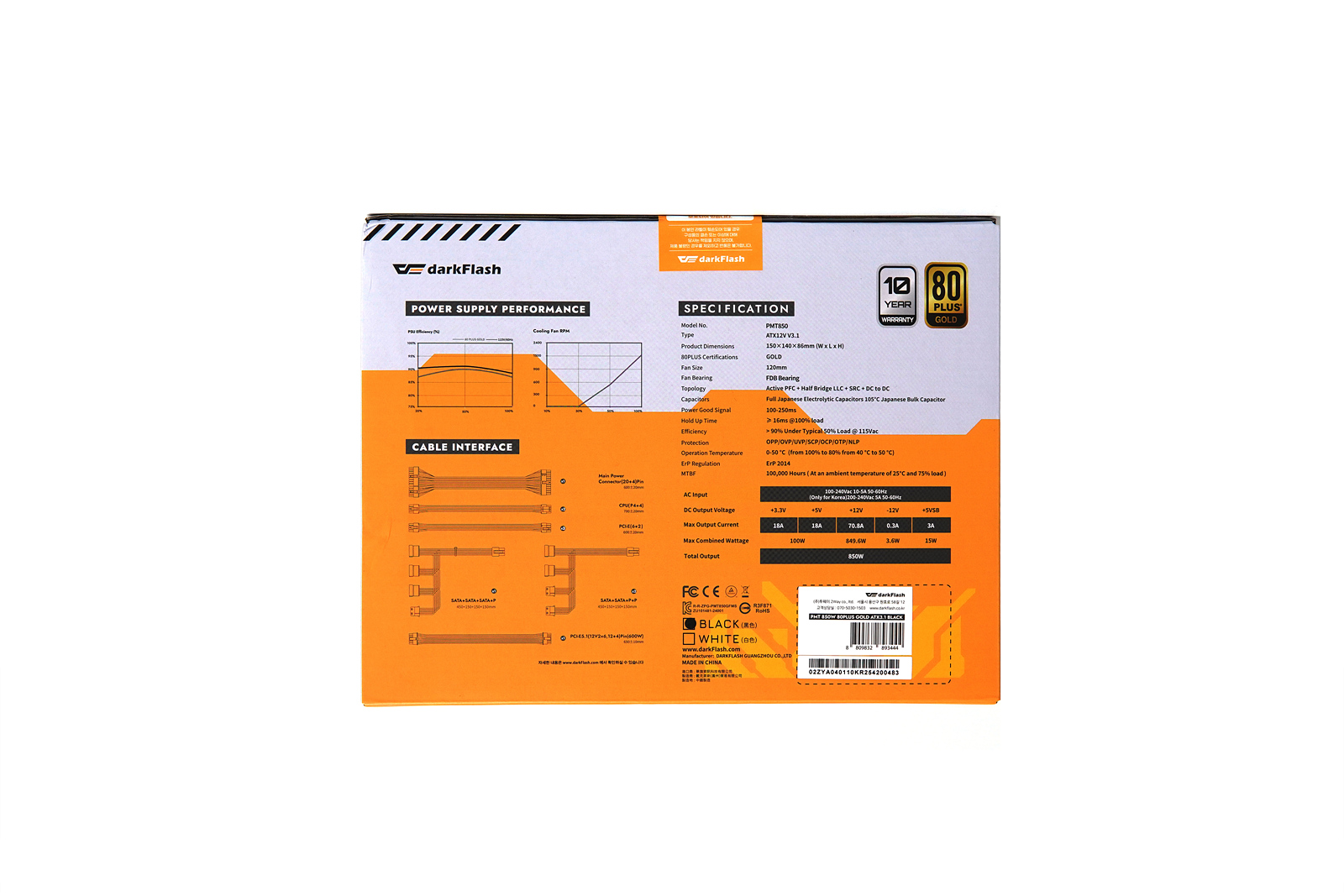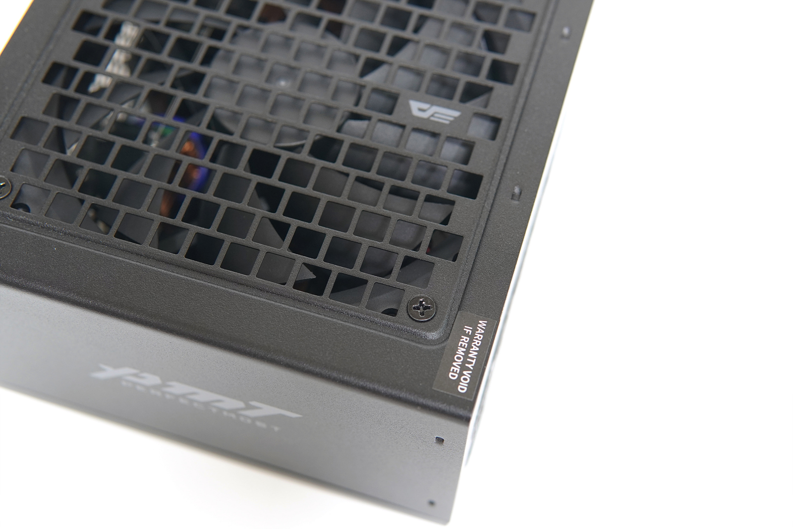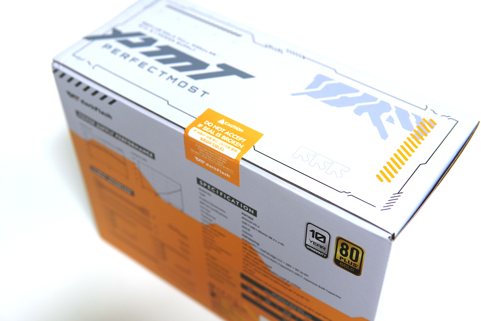 오른쪽에는 다크플래쉬 로고로 포인트를 주고 있습니다. 파워를 분해하거나 오른쪽 아래의 봉인 스티커가 훼손이 되면 고객지원을 받을 수 없으니 주의하시기 바랍니다. ^^