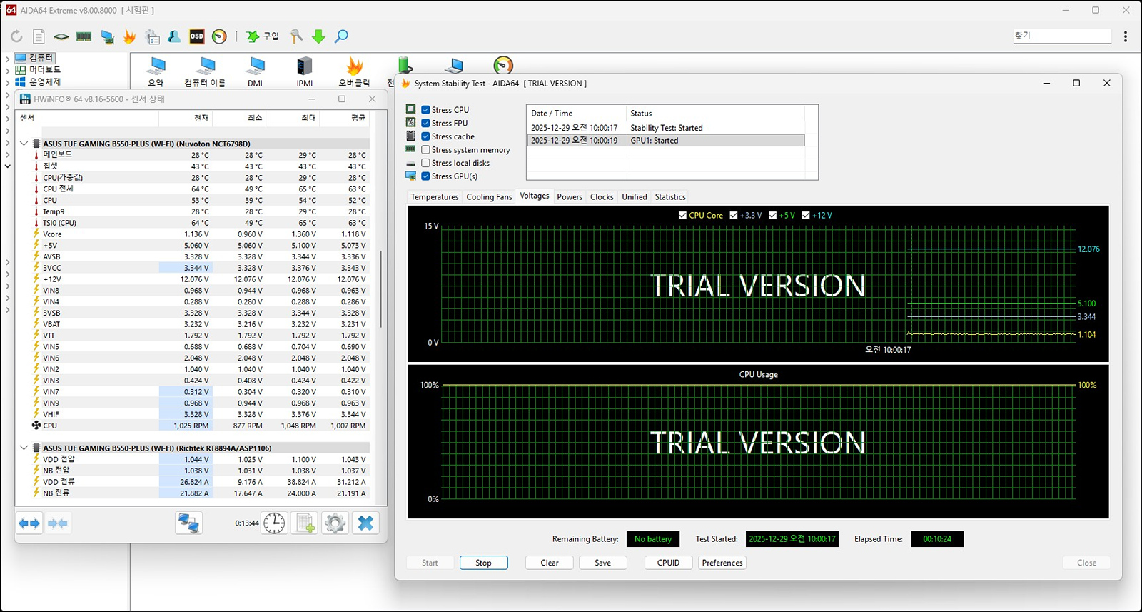 AIDA64 / OCCT로 풀로드를 걸었을 때 +5V(5.06V), 3V(3.328V), +12V(12.076V)로 준수한 성능을 보여주었으며 크게 출렁거리거나 변동률 없이 일정하게 출력을 유지하고 있습니다.