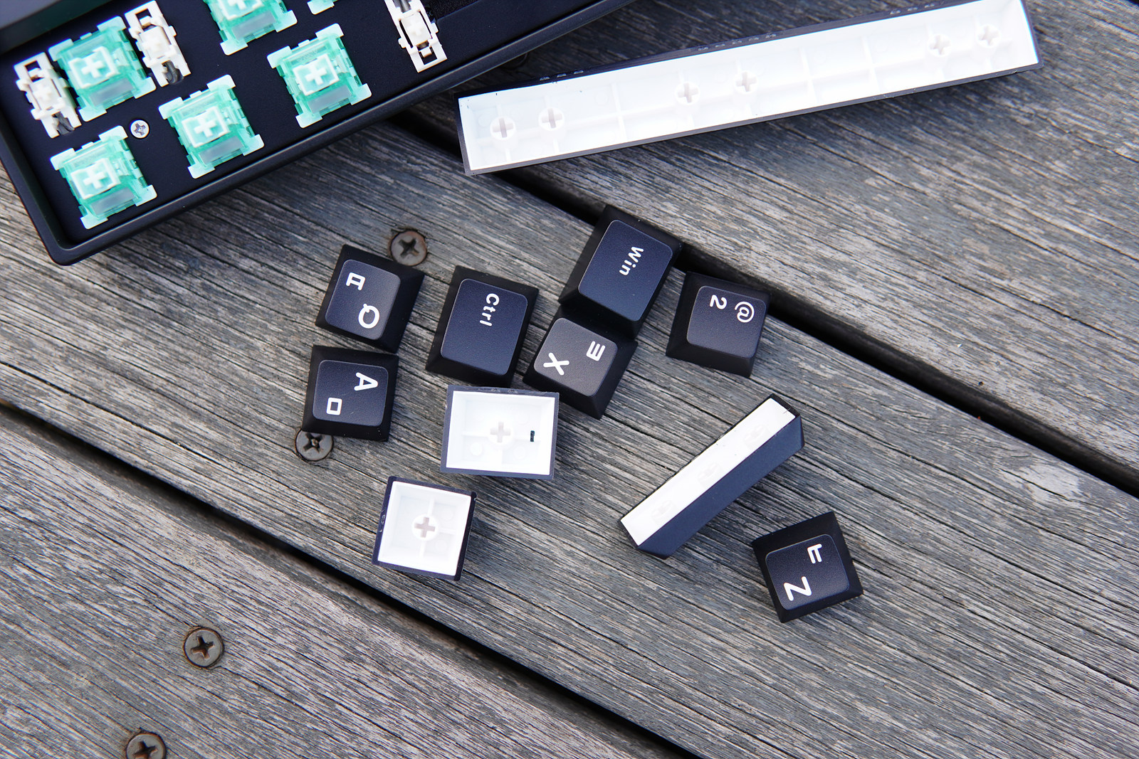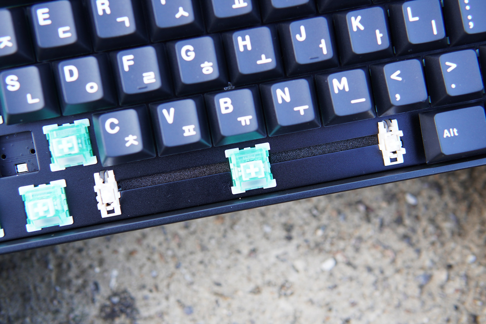 기본적으로 마그네틱 방식(글레어 자석축)이라 비자성 성질의 스테빌라이저를 사용하였으며 스페이스바에는 소음을 줄이기 위한 마감을 해두었습니다.